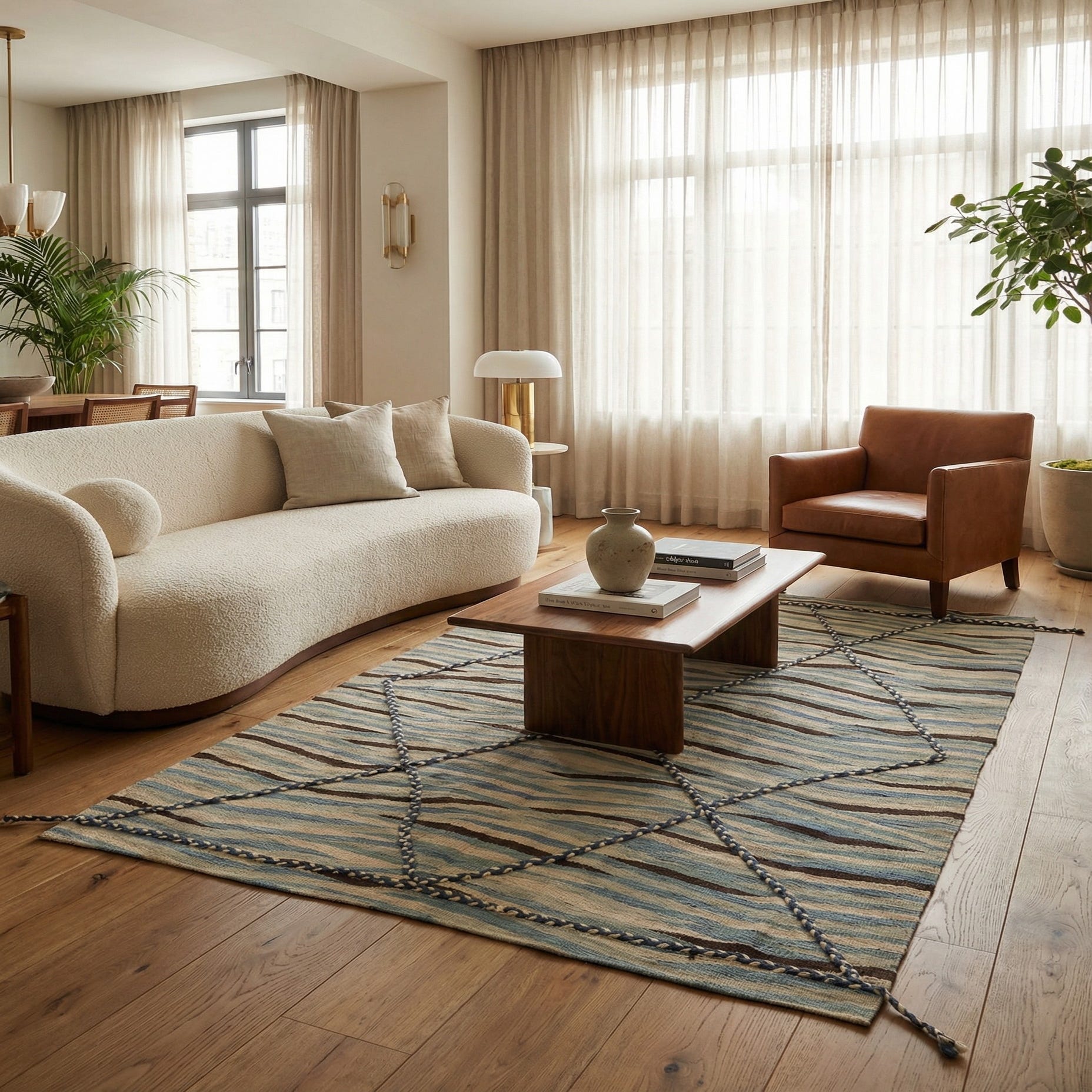 Detail image of 4' 6 x 6' 1  Hand Woven Kilim Modern Wool Rug