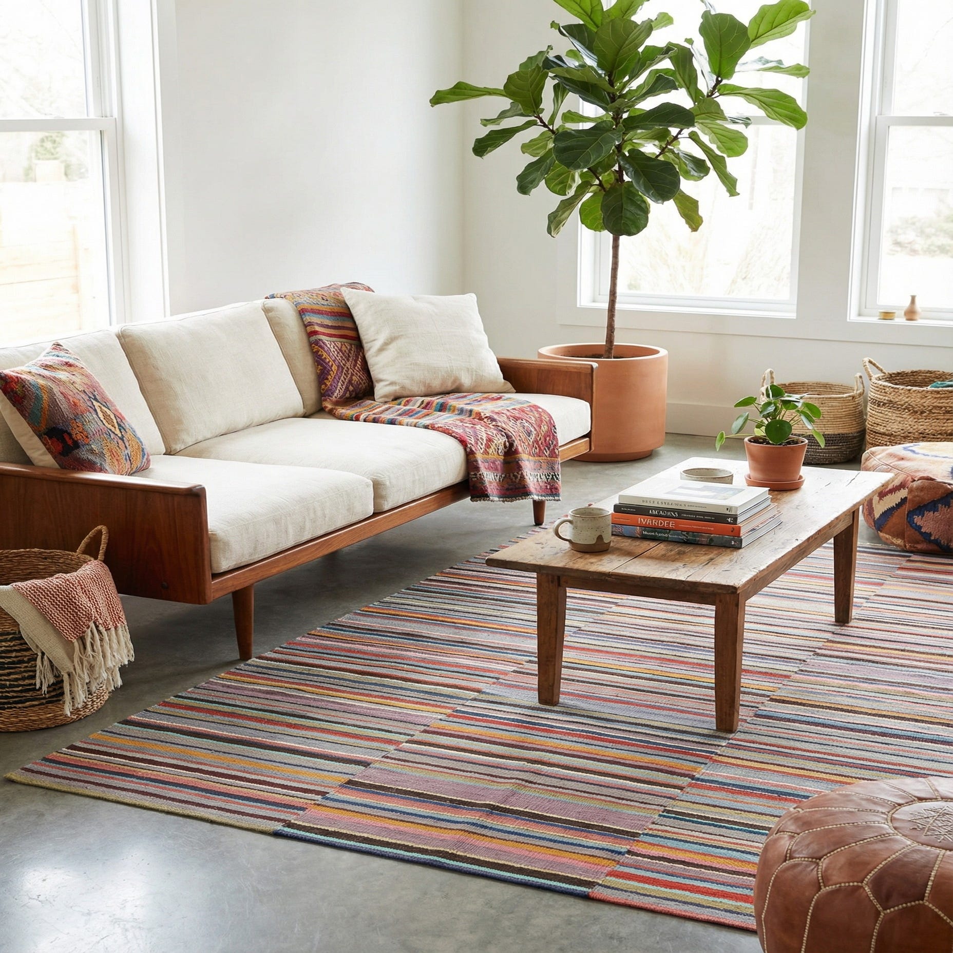 4' 7 x 6' 5 Hand Woven Kilim Modern Wool Rug