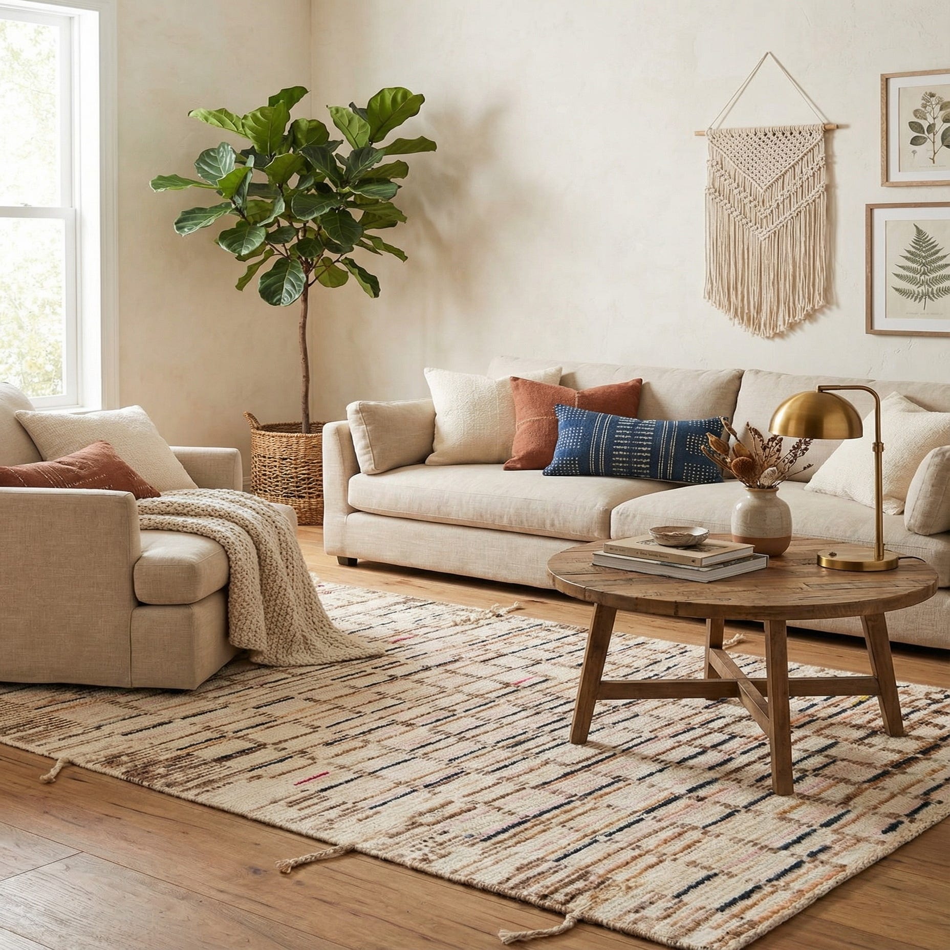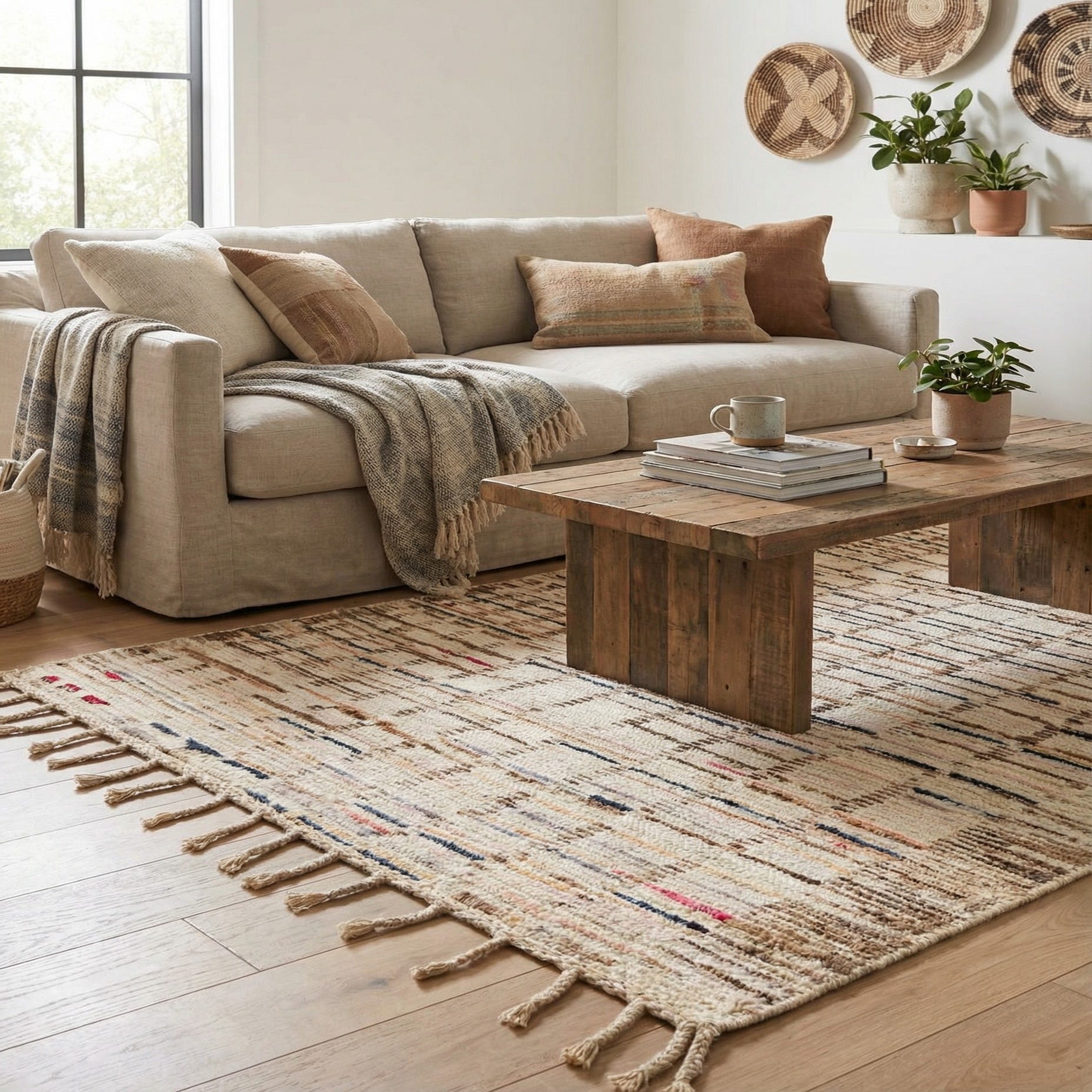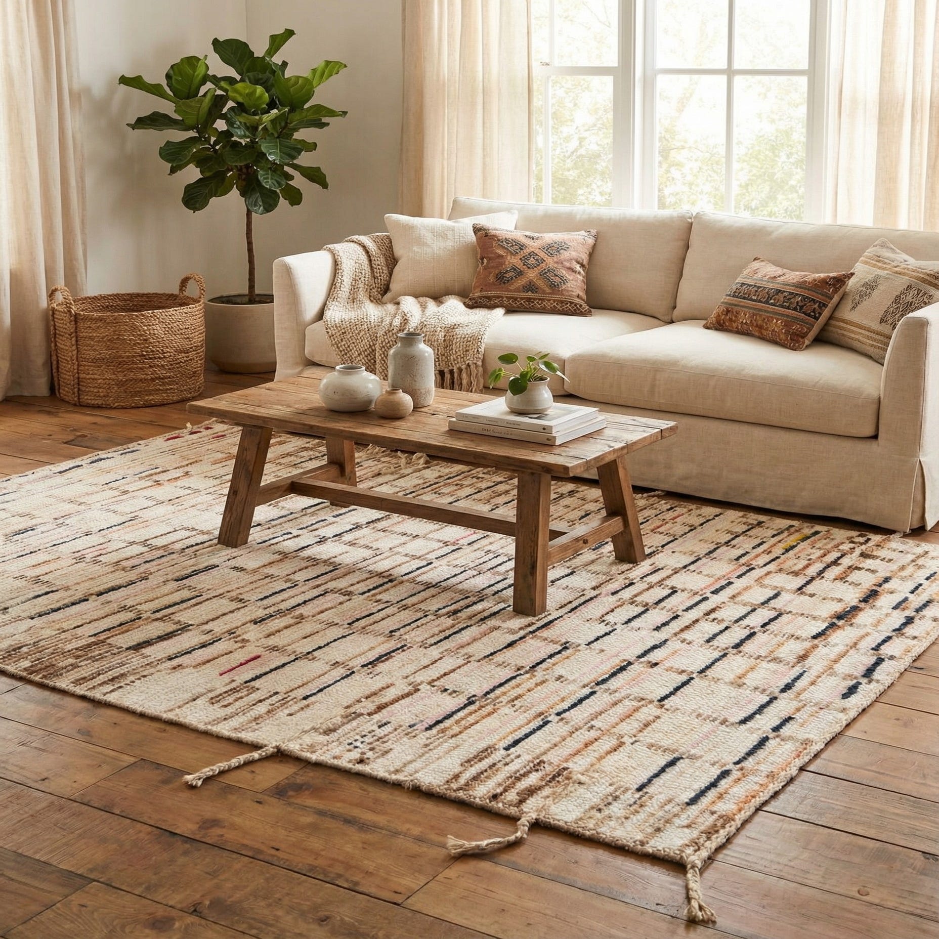 Primary color is Multi. Colors in this rug include: Multi, Beige, Black, Brown, Red, Cream.