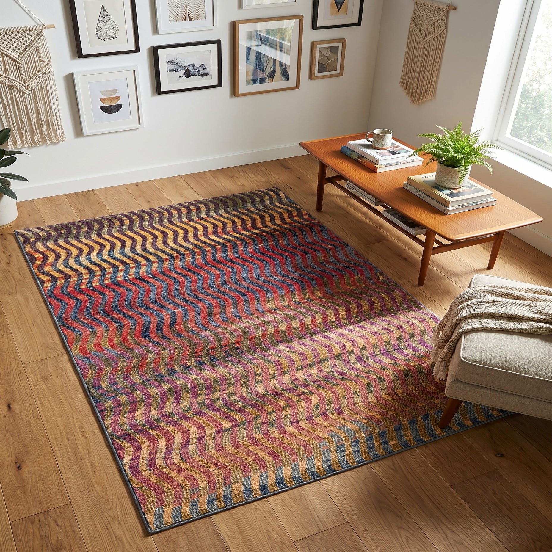 Fell in love with this rug when I saw it on-line for its delightful pattern and vivid colors. It arrived in two days from the day ordered about a week ago. We put it down on our renovated deck today...it is even more awesome than we thought it would be! The colors and pattern outset the colors of the deck perfectly.