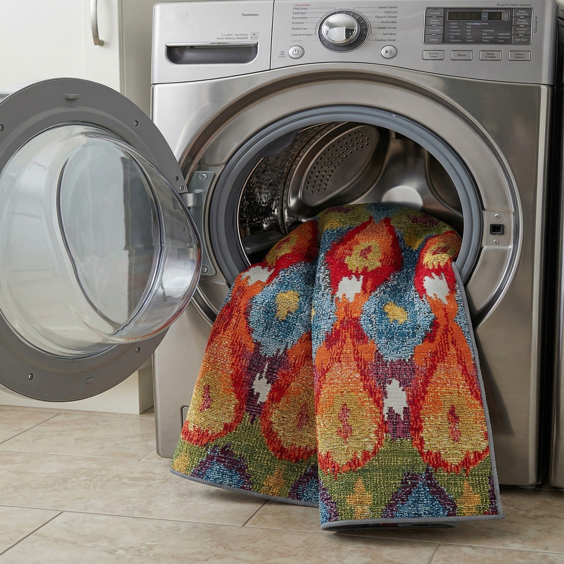 Primary color is Multi. Colors in this rug include: Multi, Blue, Gold, Green, Navy Blue, Orange, Red.