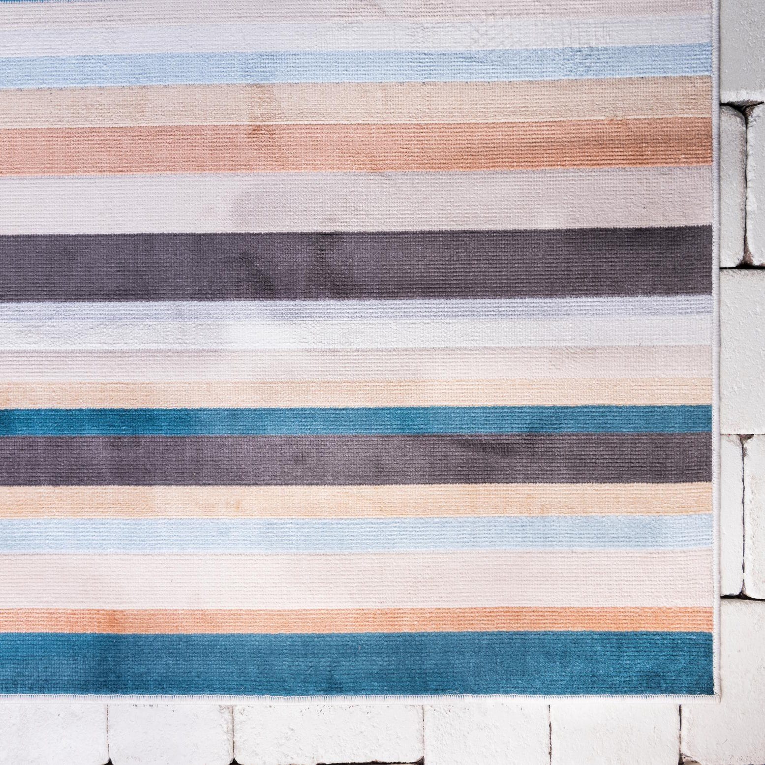 Primary color is Multi. Colors in this rug include: Multi, Beige, Blue, Cream, Gray, Orange, Teal, Yellow.