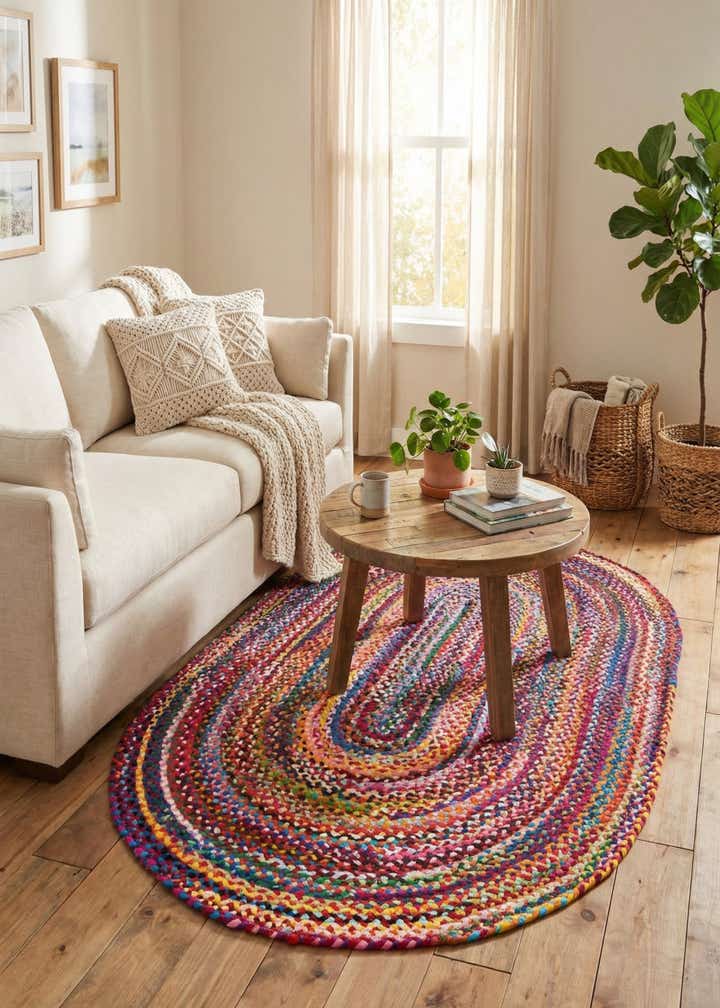 Primary image 4' 1 x 6' 1  Hand Braided Chindi Oval Rug