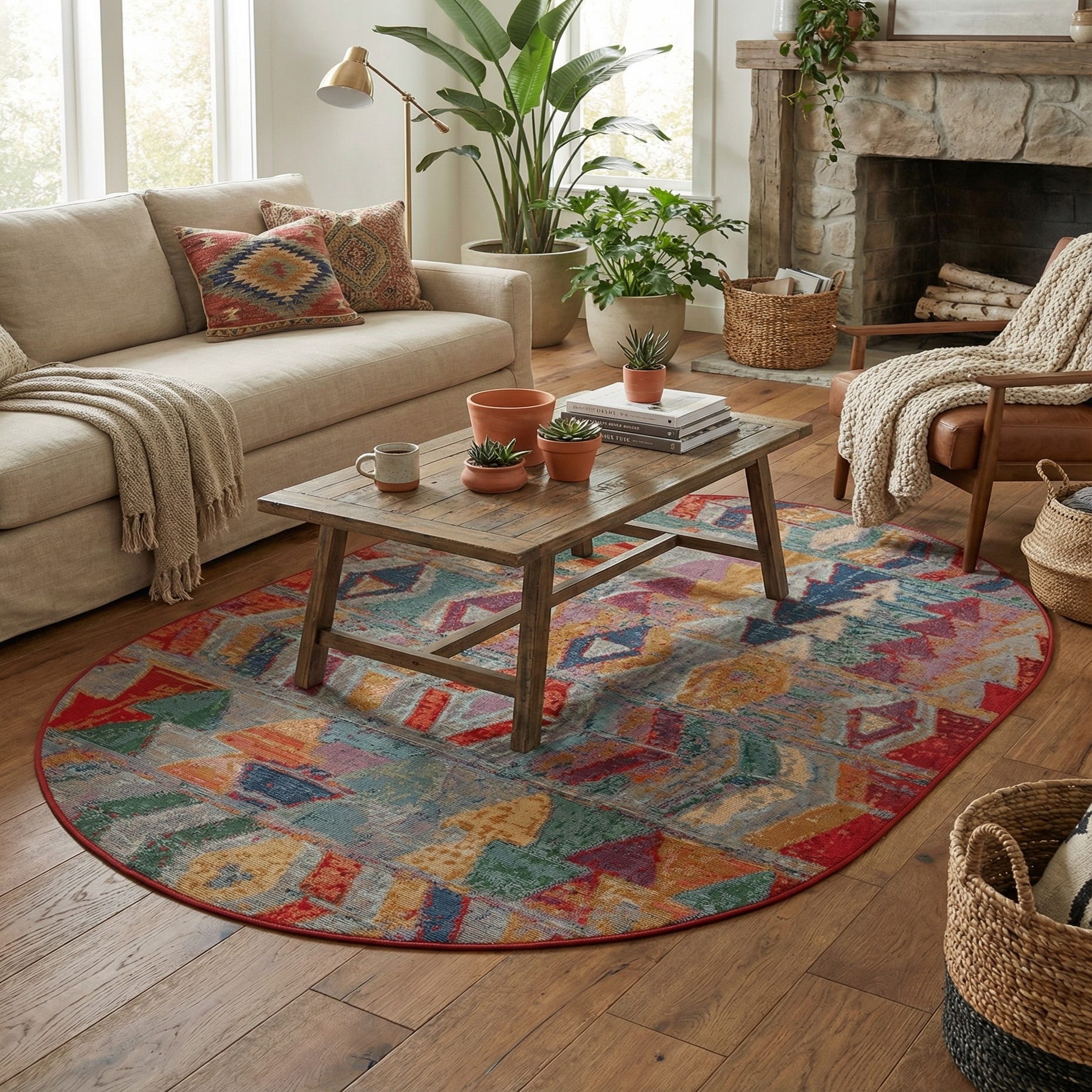 4' x 6' Washable Modern Indoor / Outdoor Oval Rug