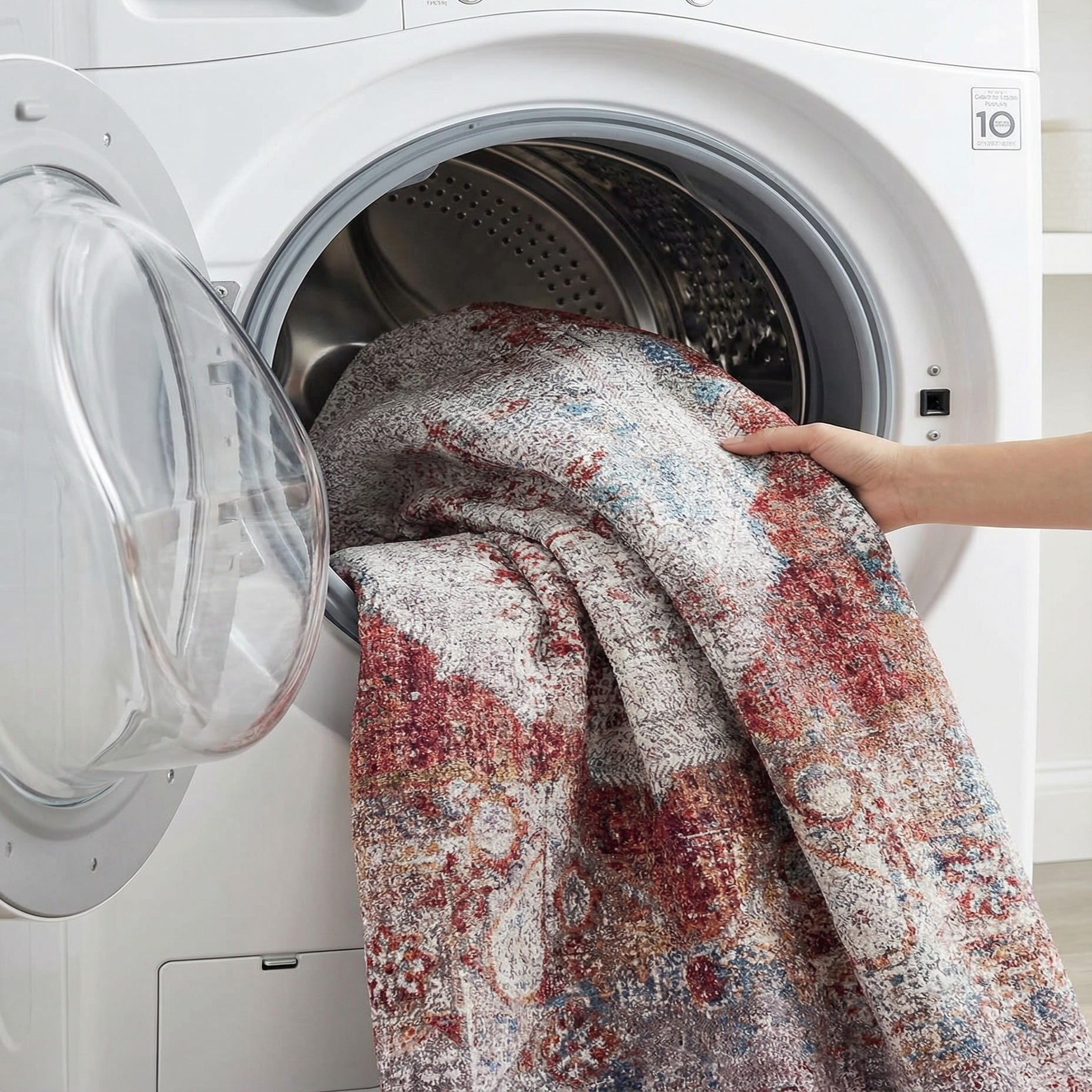 Primary color is Multi. Colors in this rug include: Multi, Blue, Ivory, Gray, Light Blue, Peach, Red, Pink.