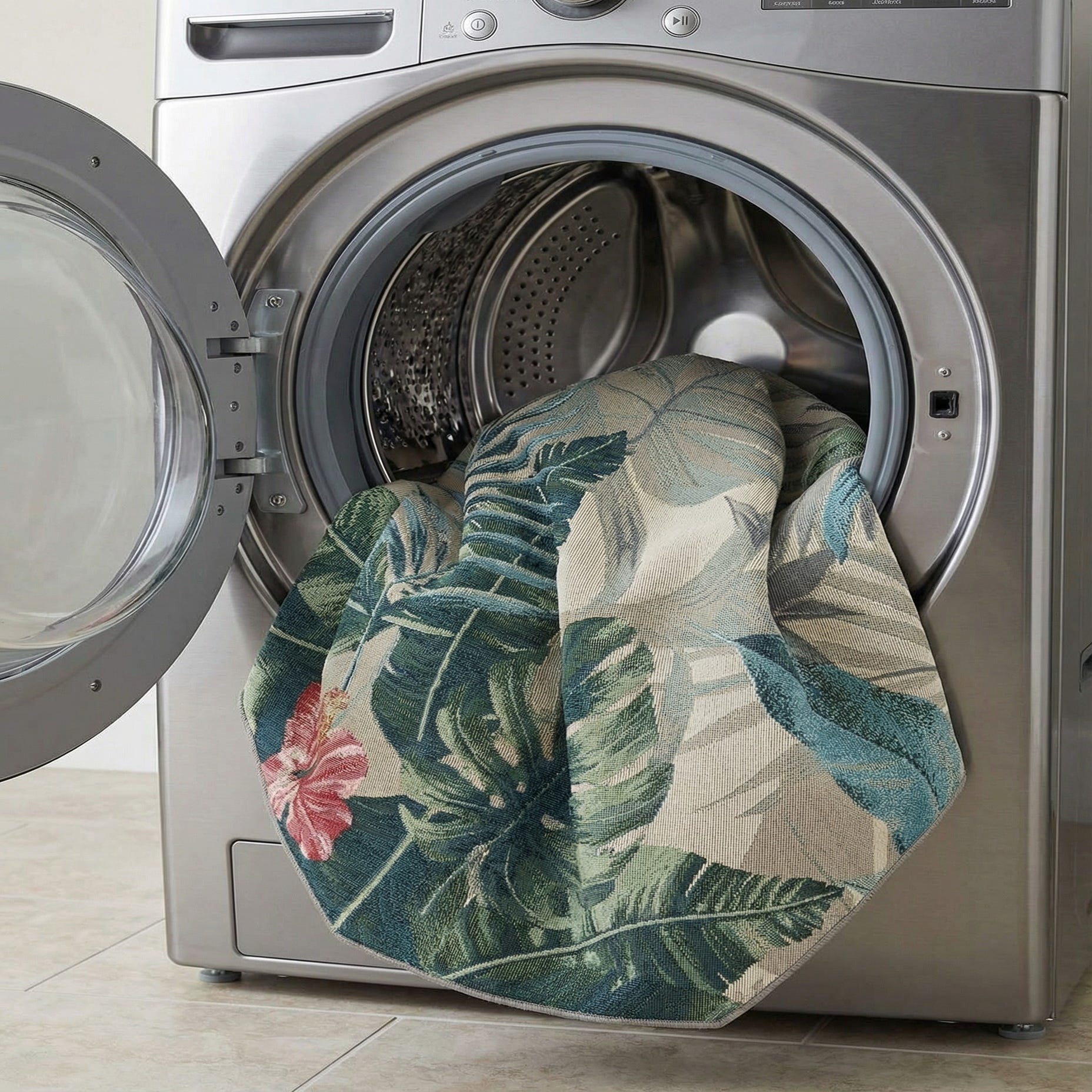 5' 3 x 5' 3 Washable Botanical Indoor / Outdoor Octagon Rug