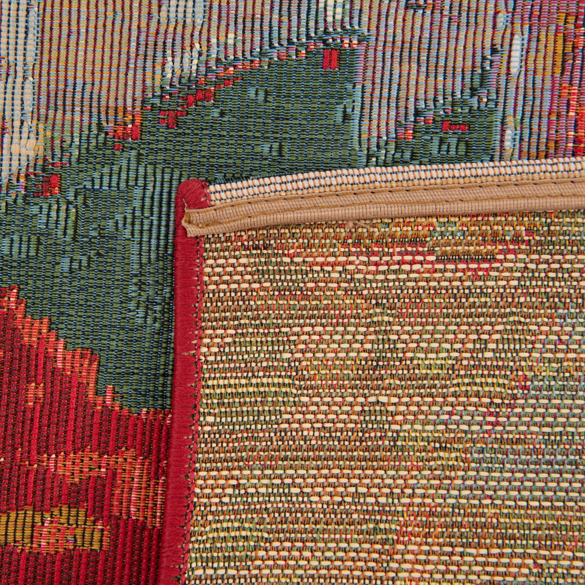 Primary color is Multi. Colors in this rug include: Multi, Blue, Light Blue, Light Green, Olive, Orange, Peach, Red, Tan, Terracotta, Yellow.