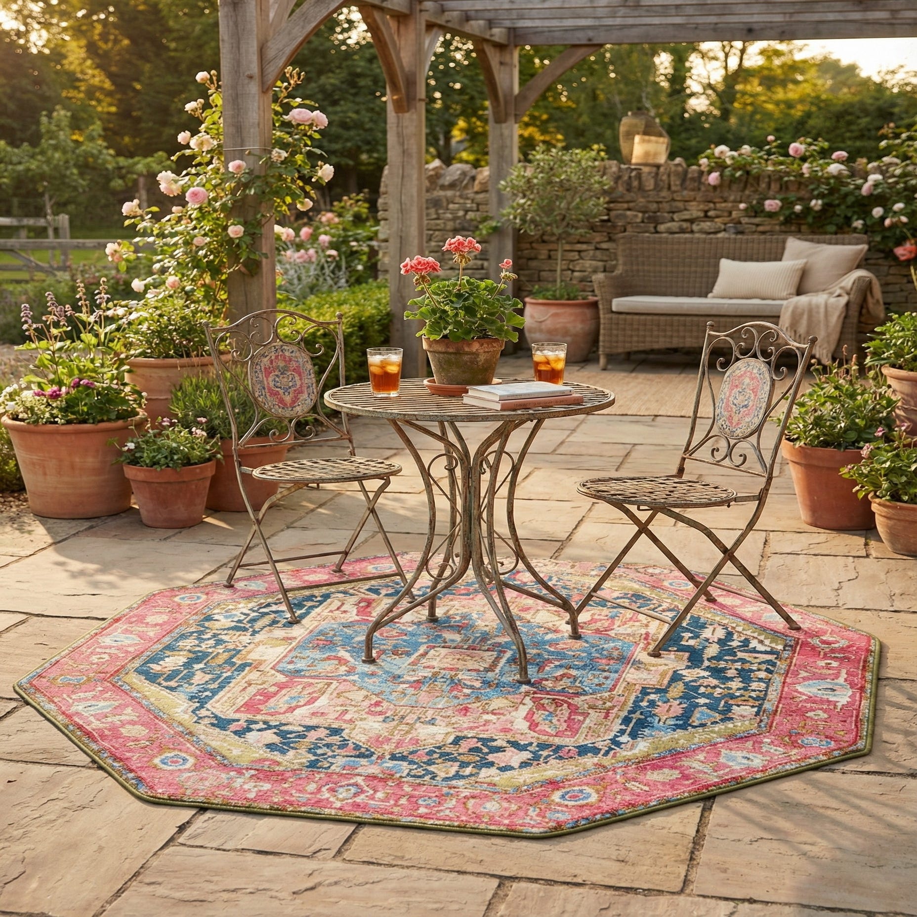 Detail image of 5' 3 x 5' 3  Washable Traditional Indoor / Outdoor Octagon Rug