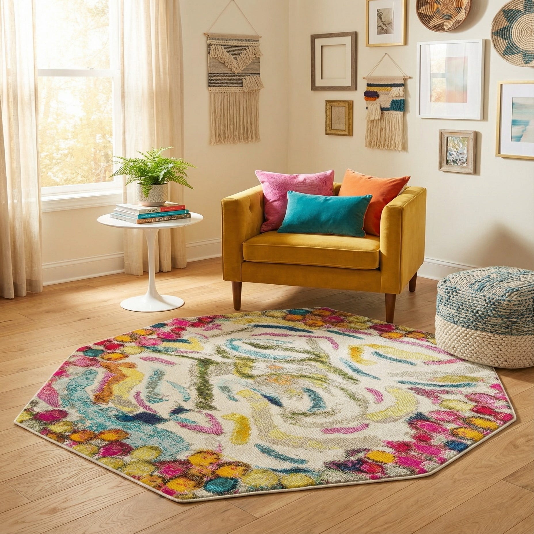 5' 3 x 5' 3 Washable Vivid Octagon Rug