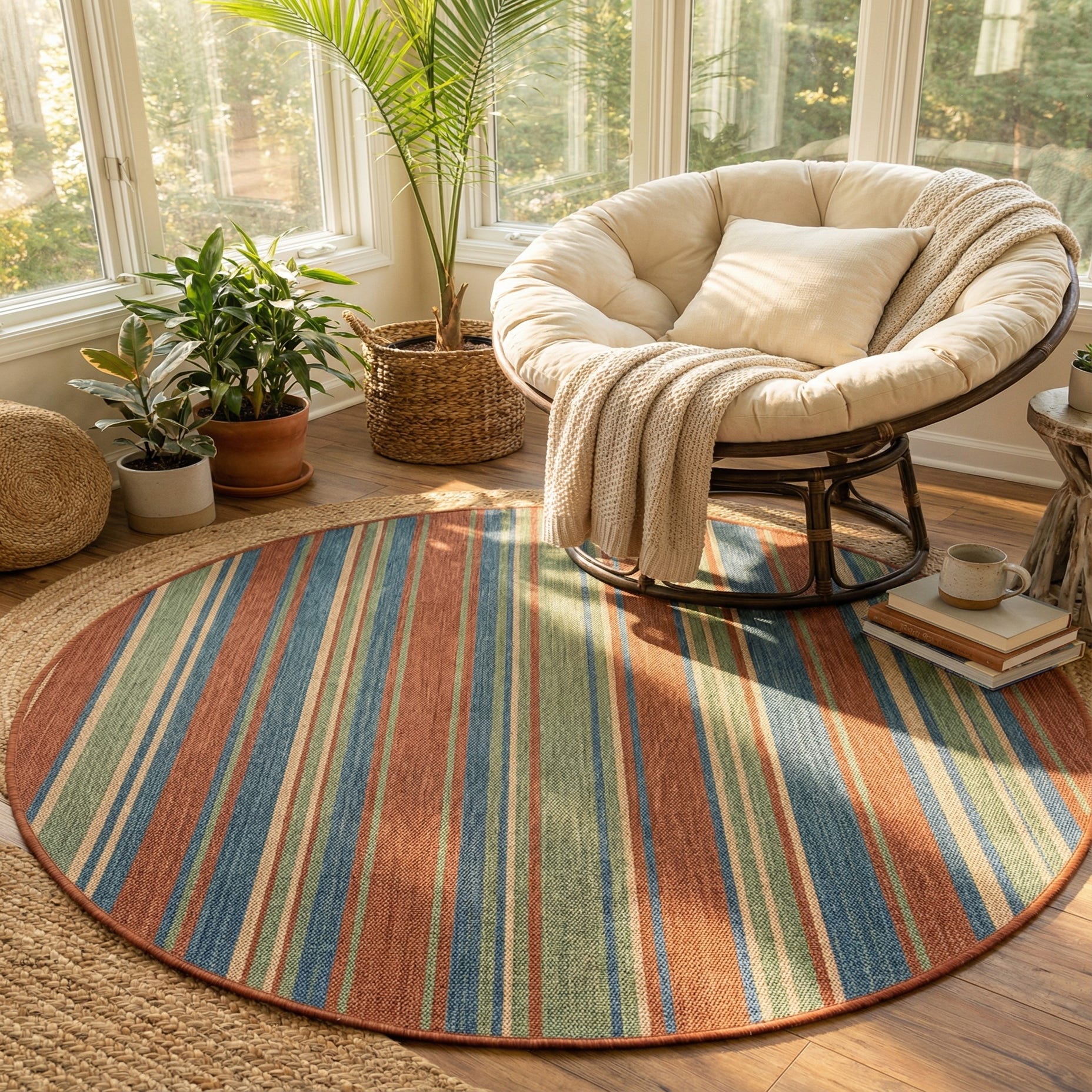 5' 3 x 5' 3 Washable Baja Indoor / Outdoor Round Rug