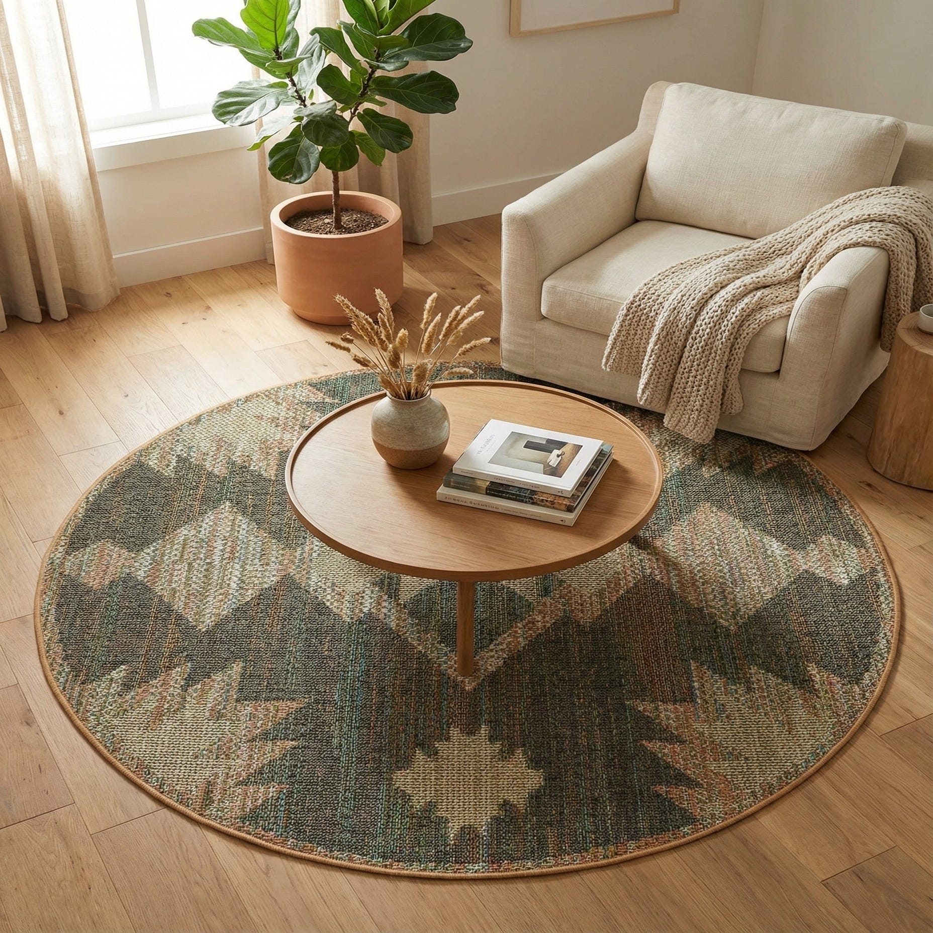 5' 3 x 5' 3 Washable Baja Indoor / Outdoor Round Rug