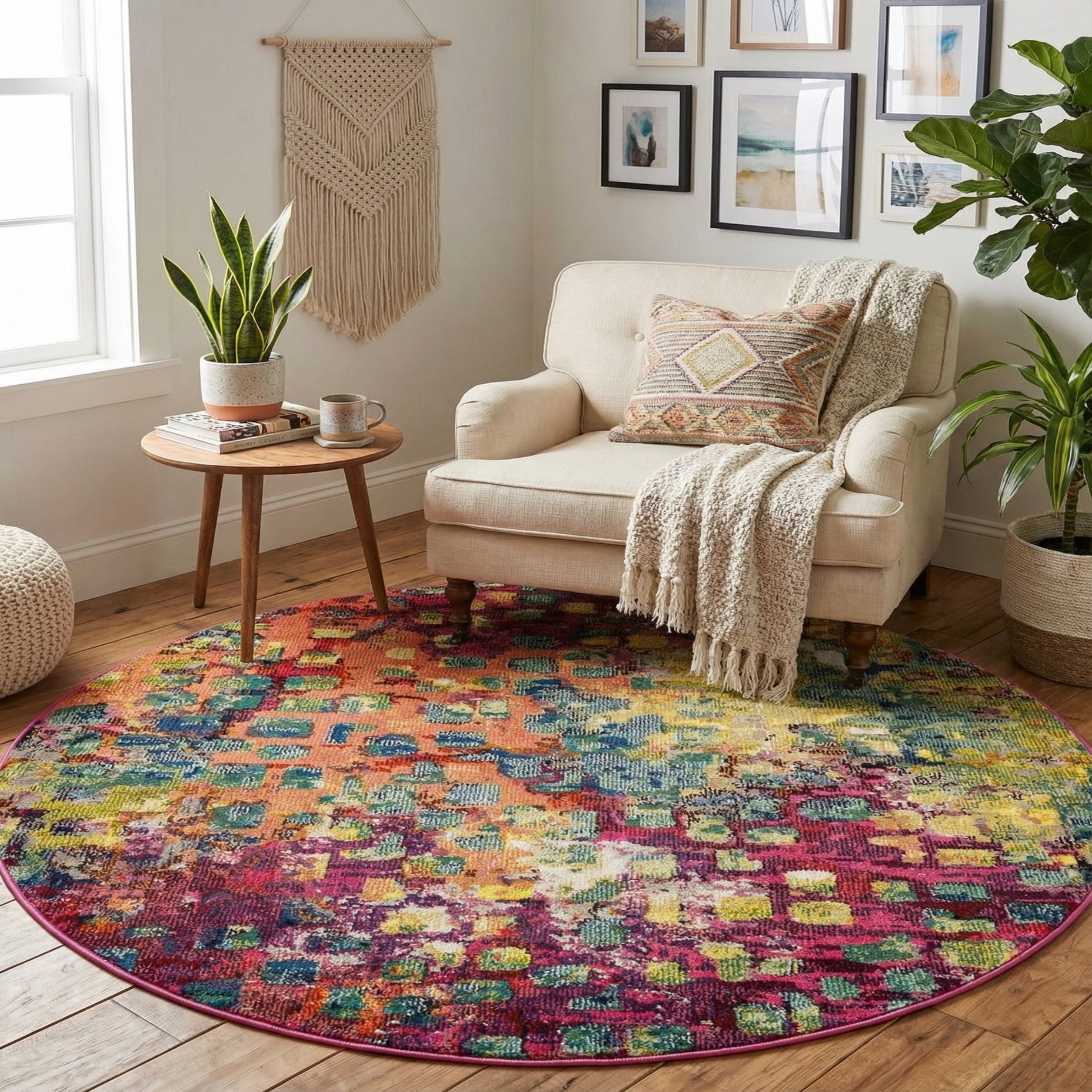 Primary image 5' x 5'  Washable Barcelona Round Rug