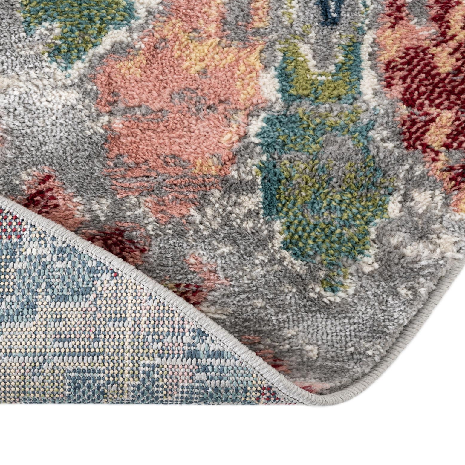 Primary color is Multi. Colors in this rug include: Multi, Blue, Burgundy, Green, Ivory, Navy Blue, Puce.