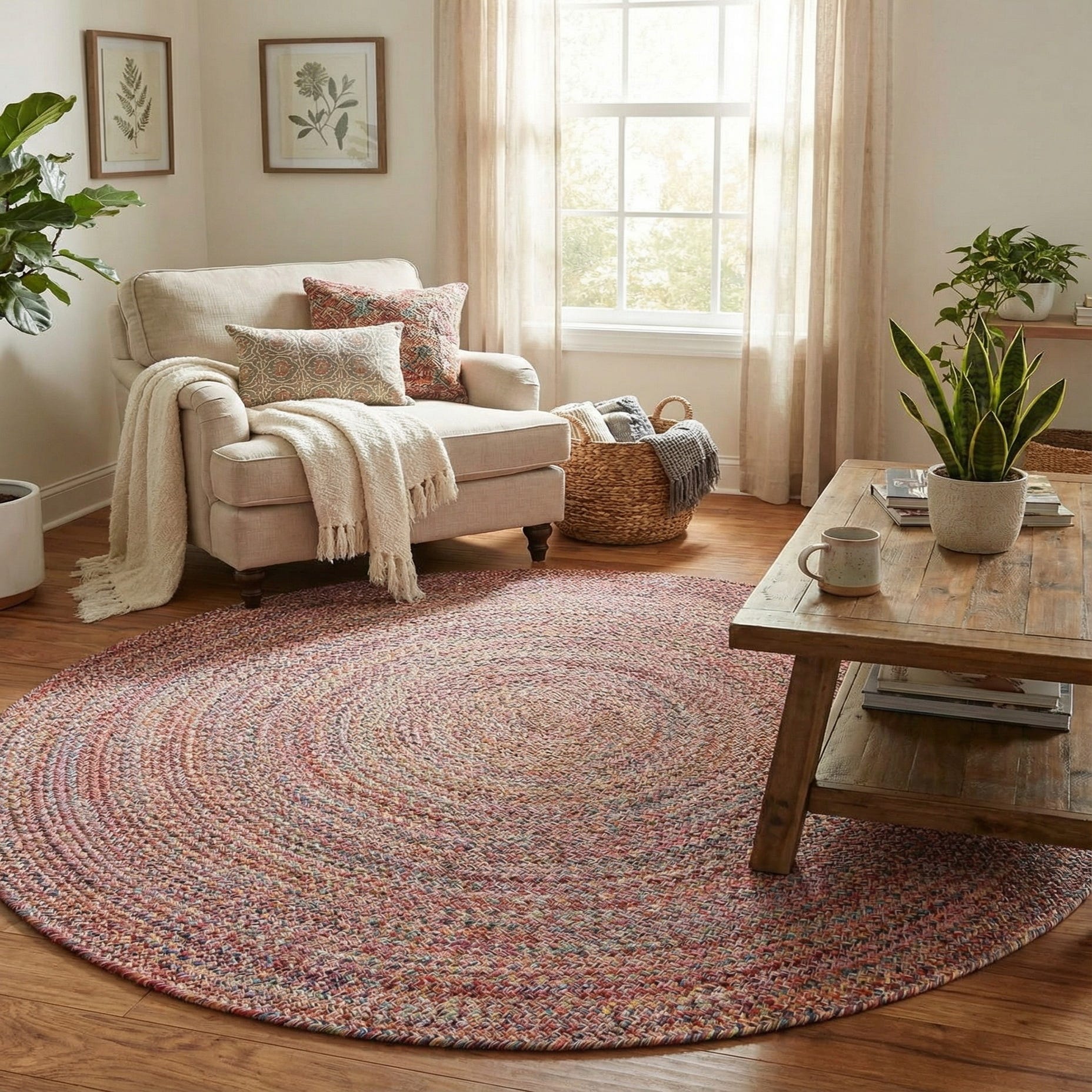 5' 3 x 5' 3 Hand Woven Eco Verse Washable Indoor / Outdoor Round Rug