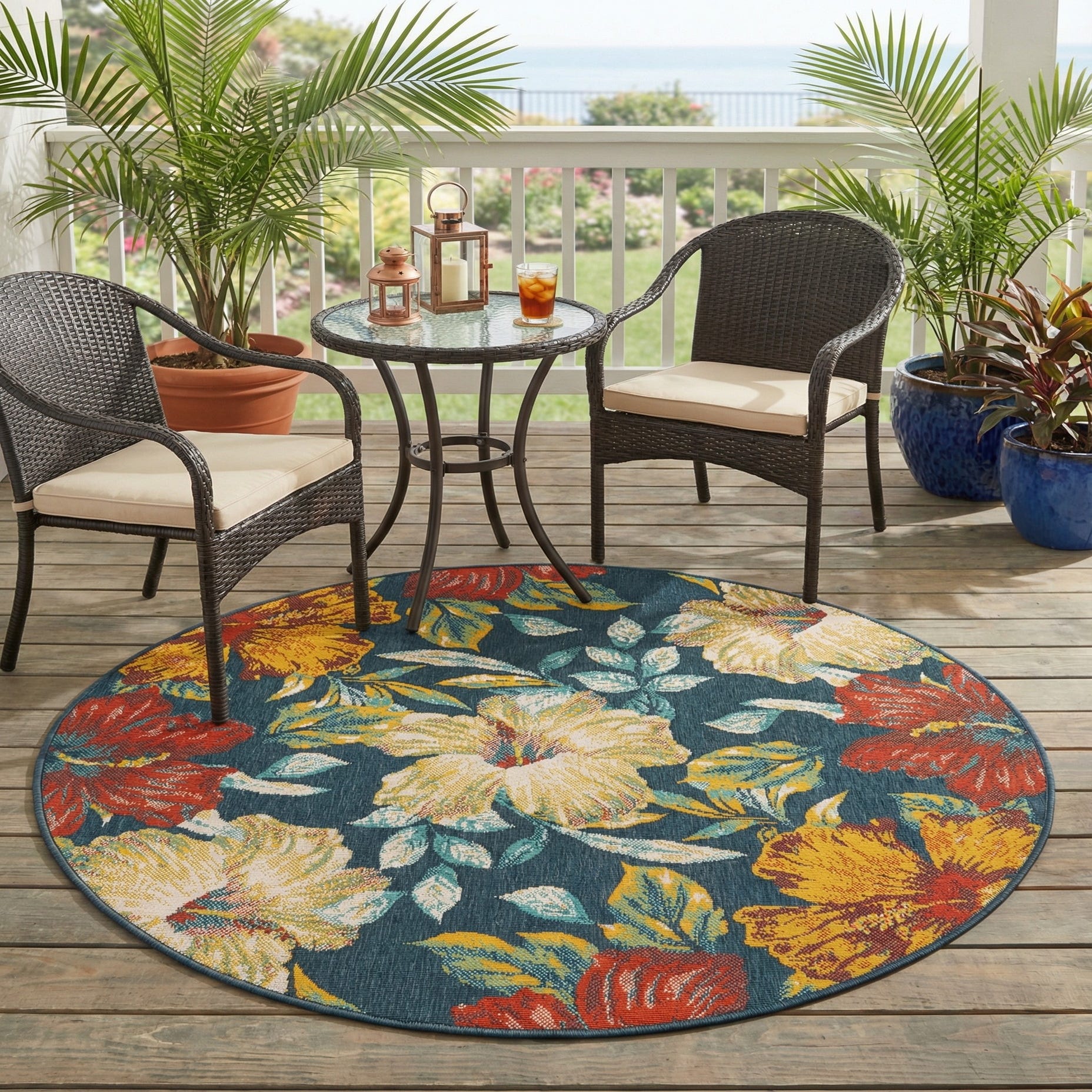5' 3 x 5' 3 Washable Coastal Indoor / Outdoor Round Rug