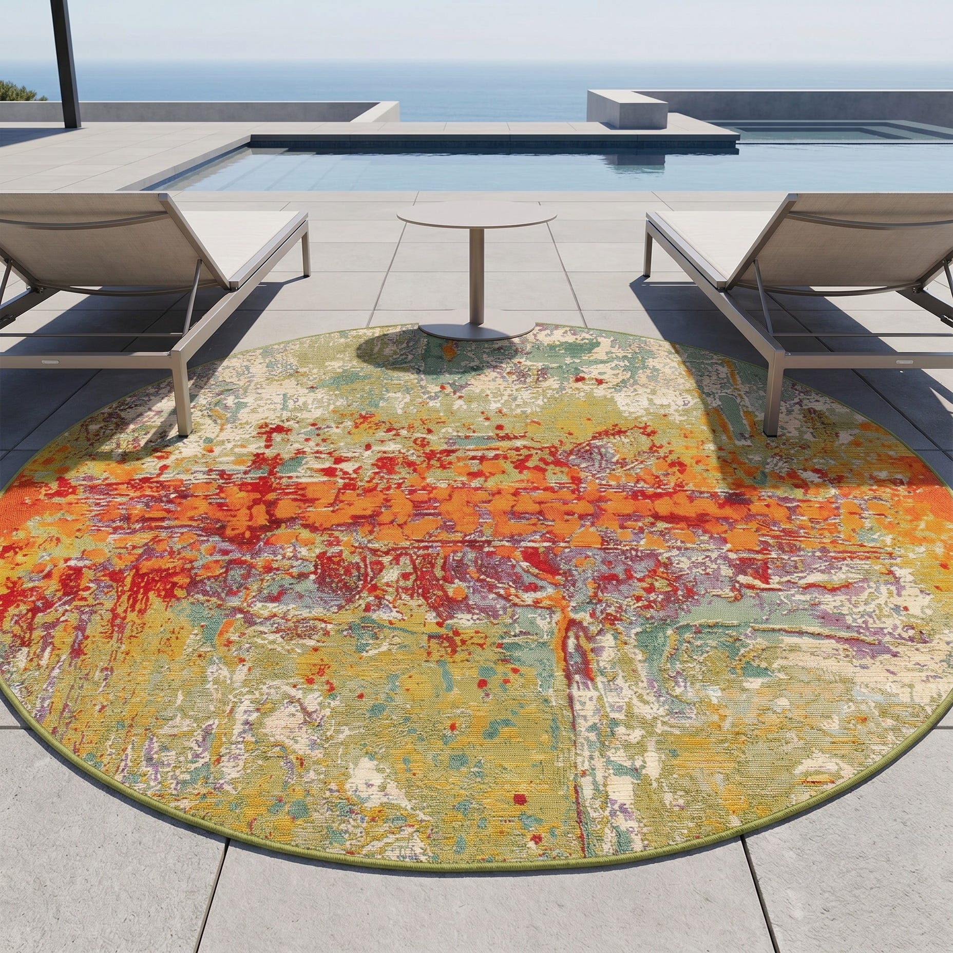 5' x 5' Easy-Clean Modern Indoor / Outdoor Round Rug