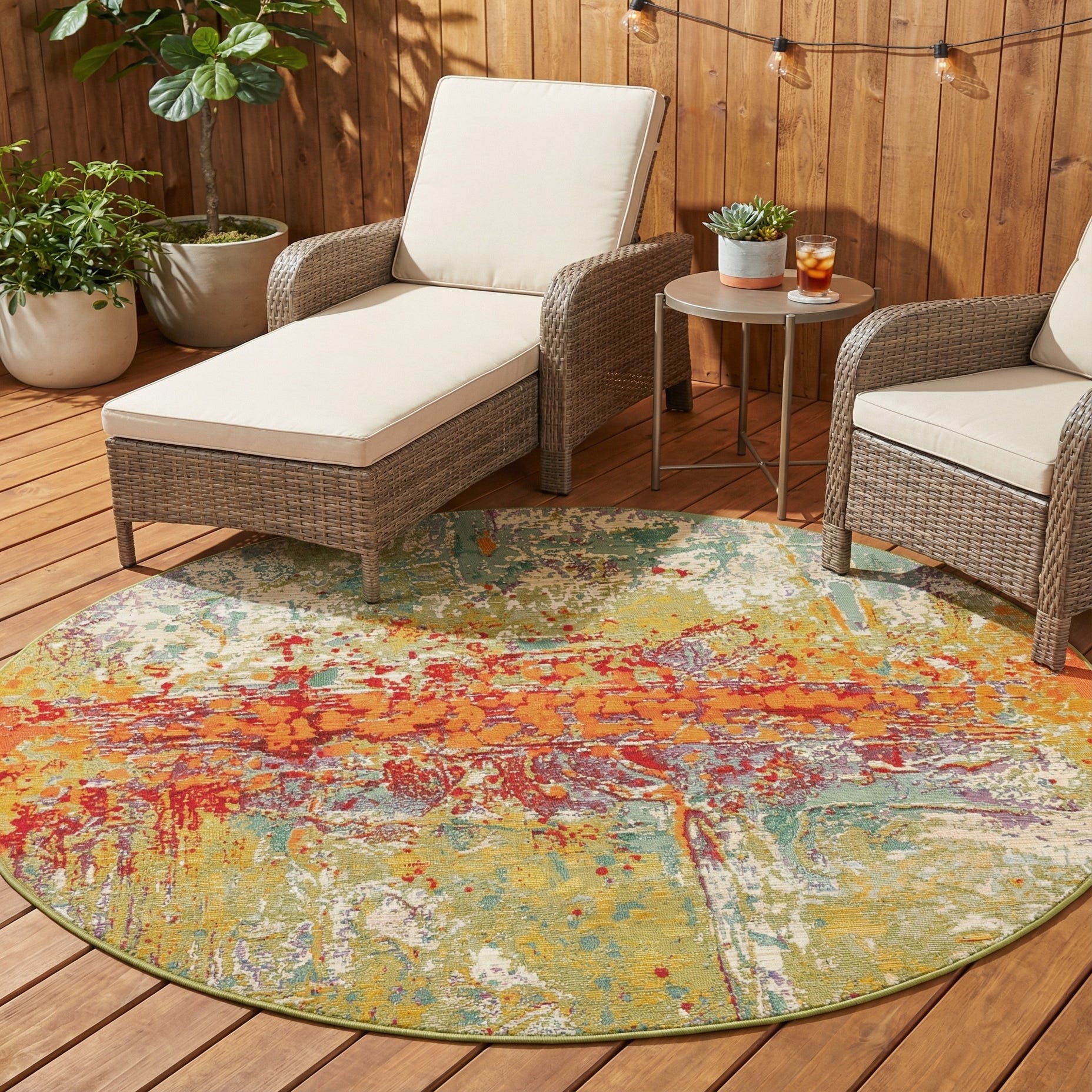 5' x 5' Washable Modern Indoor / Outdoor Round Rug