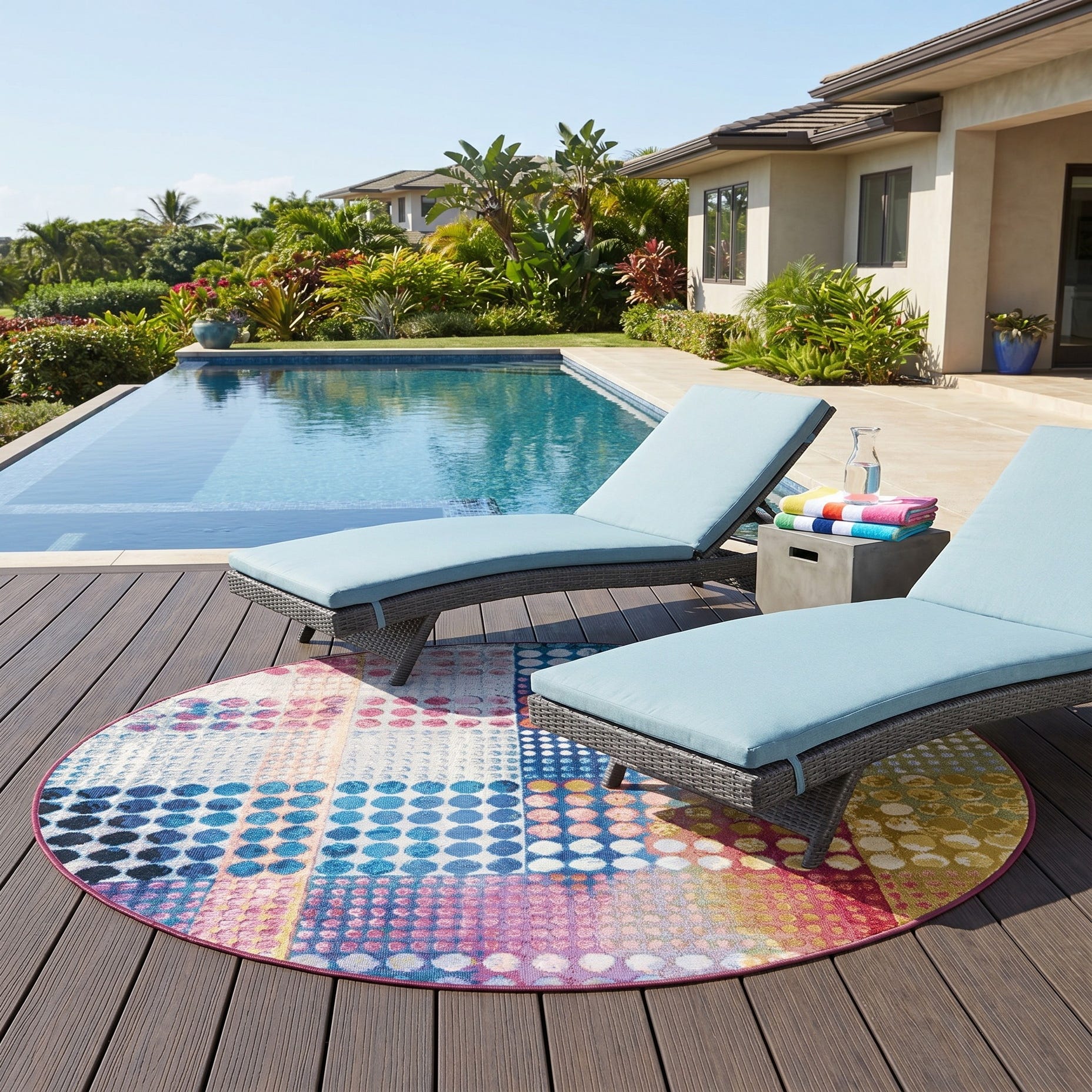 This rug just pops on our patio. Sizing, color match and timely delivery. Thanks