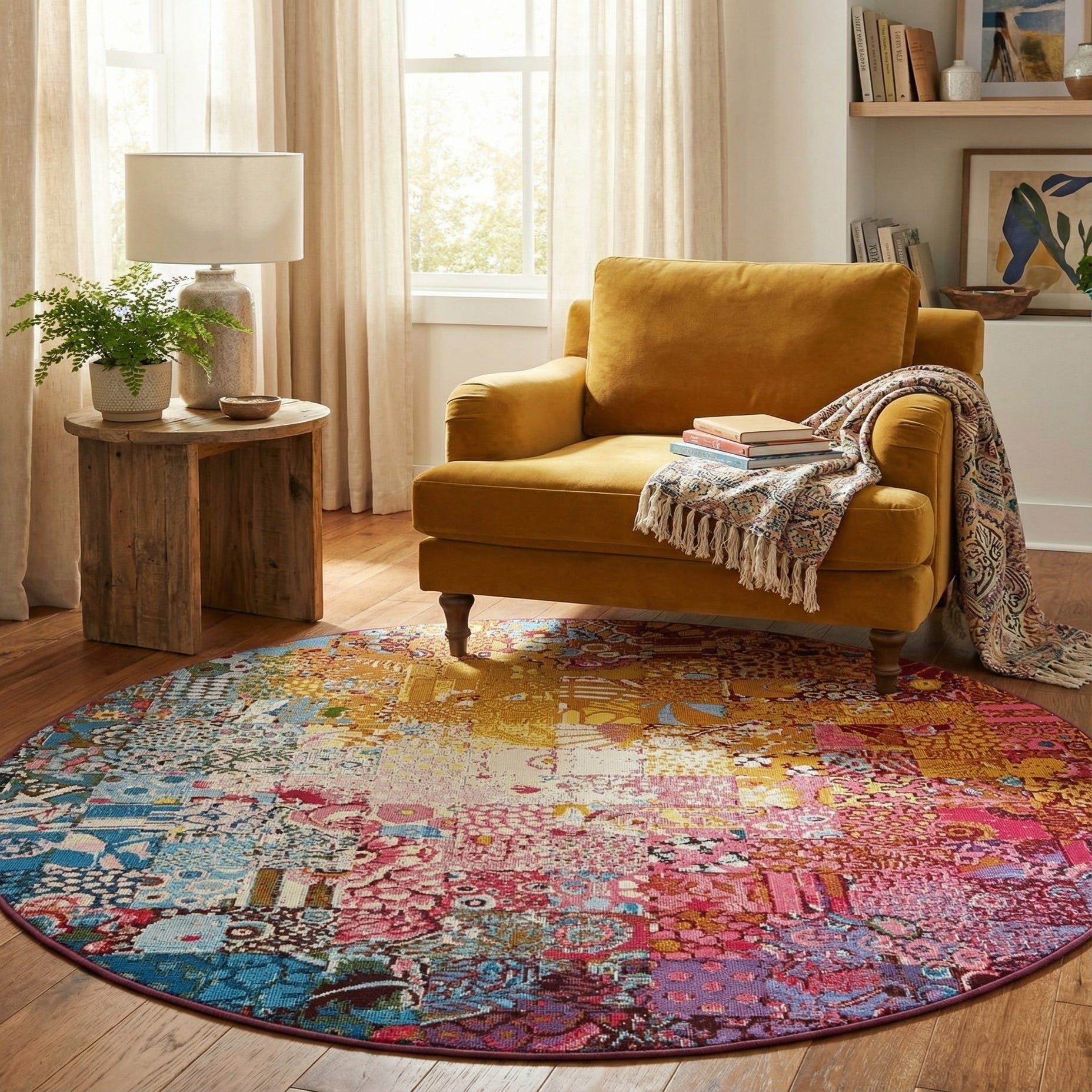 5' x 5' Washable Modern Indoor / Outdoor Round Rug