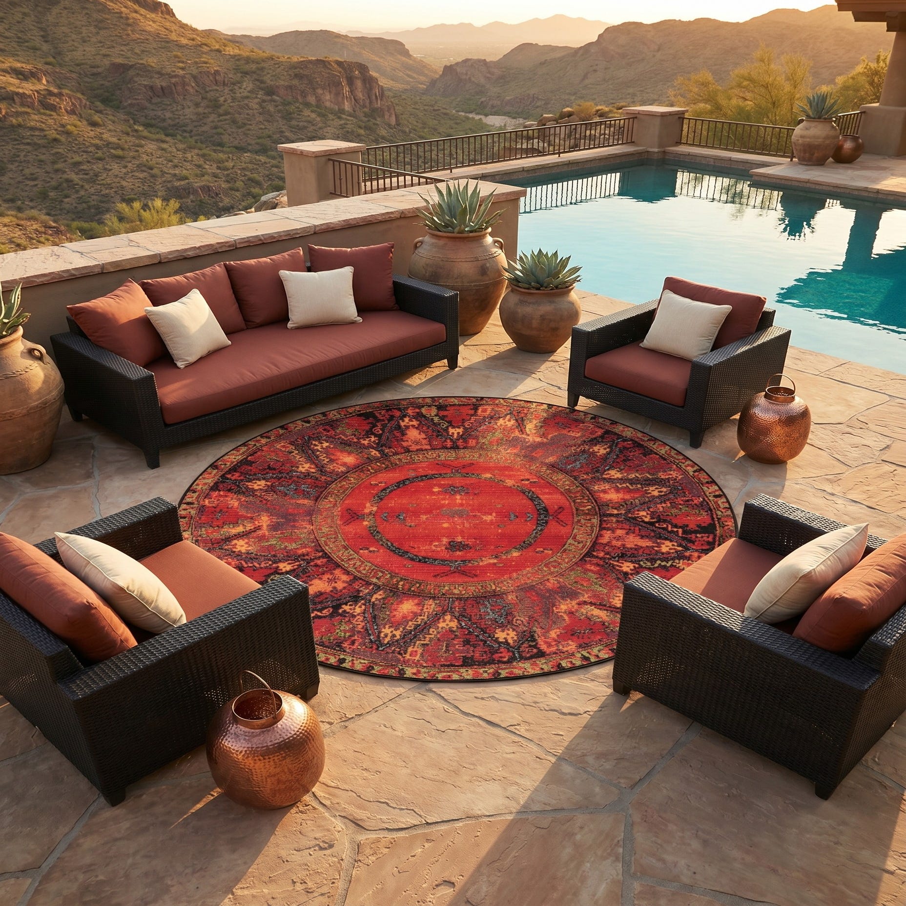 5' x 5' Easy-Clean Tribal Indoor / Outdoor Round Rug