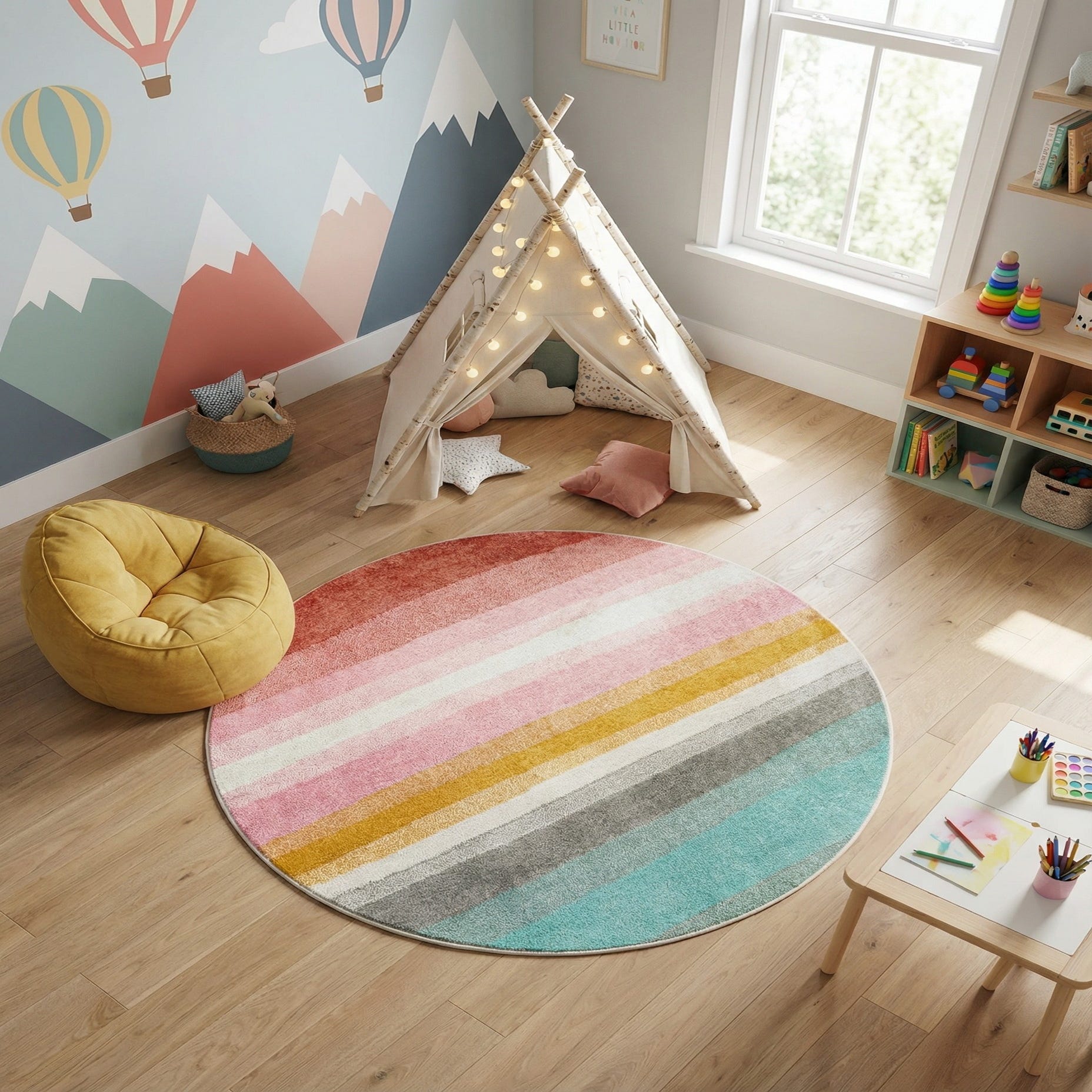 5' 3 x 5' 3 Rainbow Stripes Whimsy Kids Round Rug