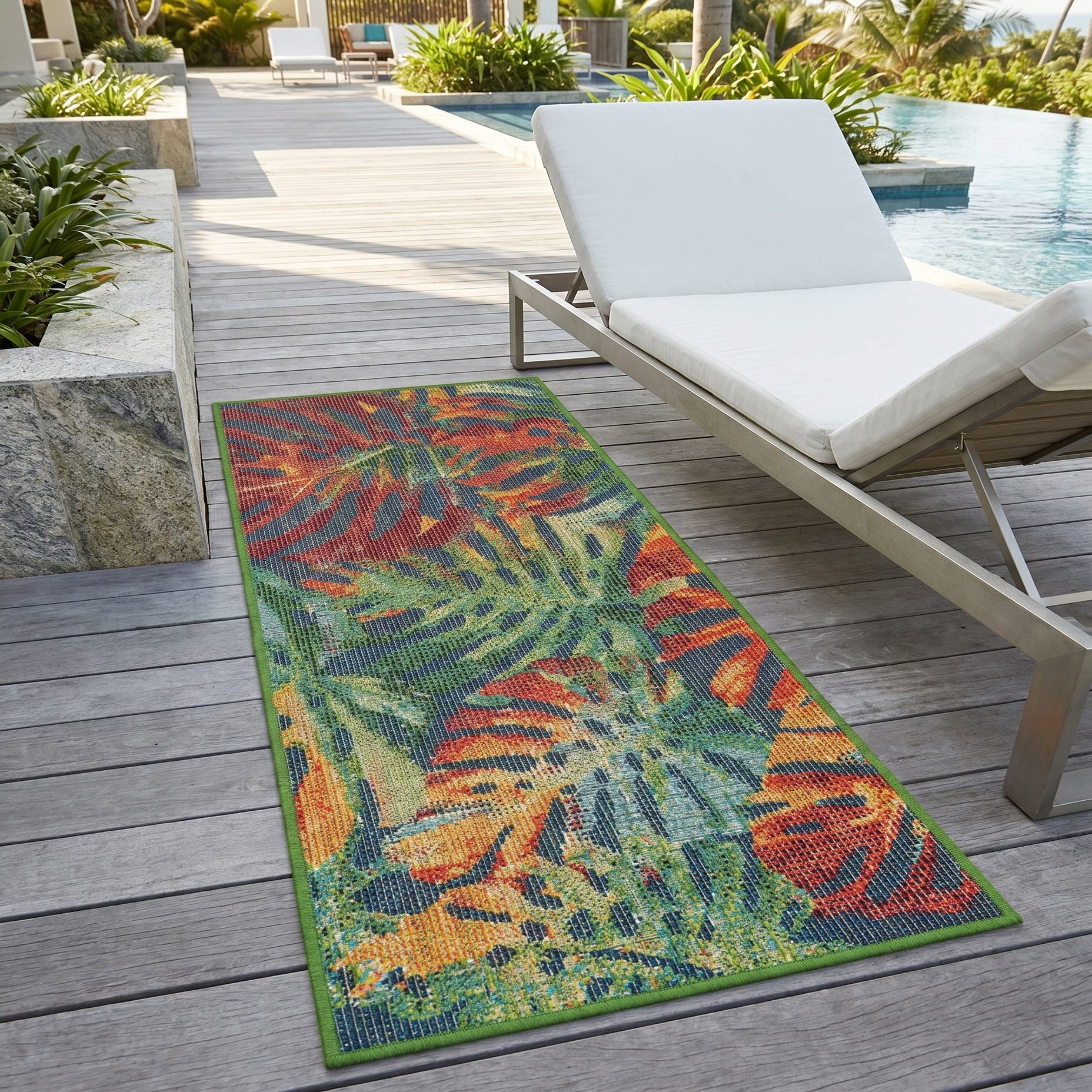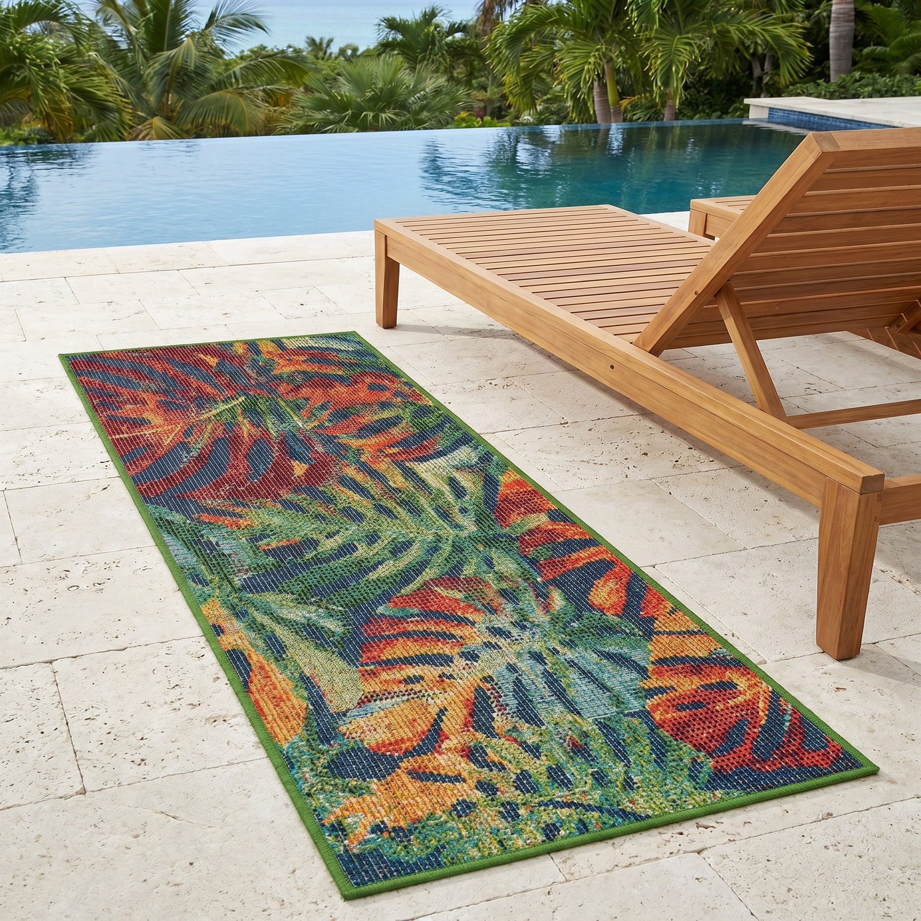 This rug perfectly suits my space and needs. I wanted something durable and colorful. The colors are beautiful; just as pictured! It's made well shipping was quick and the sale price was great. BUT...one problem and it's significant; it came so tightly rolled (inside out) that I have not been able to get it to lay completely flat. Because of the rigid material it's made of (it's an outdoor rug) it's been impossible to handroll it to flatten it. I have laid it out upside down with weights on the ends but even after several weeks the ends still curl up. It's created a tripping hazard. HELP!