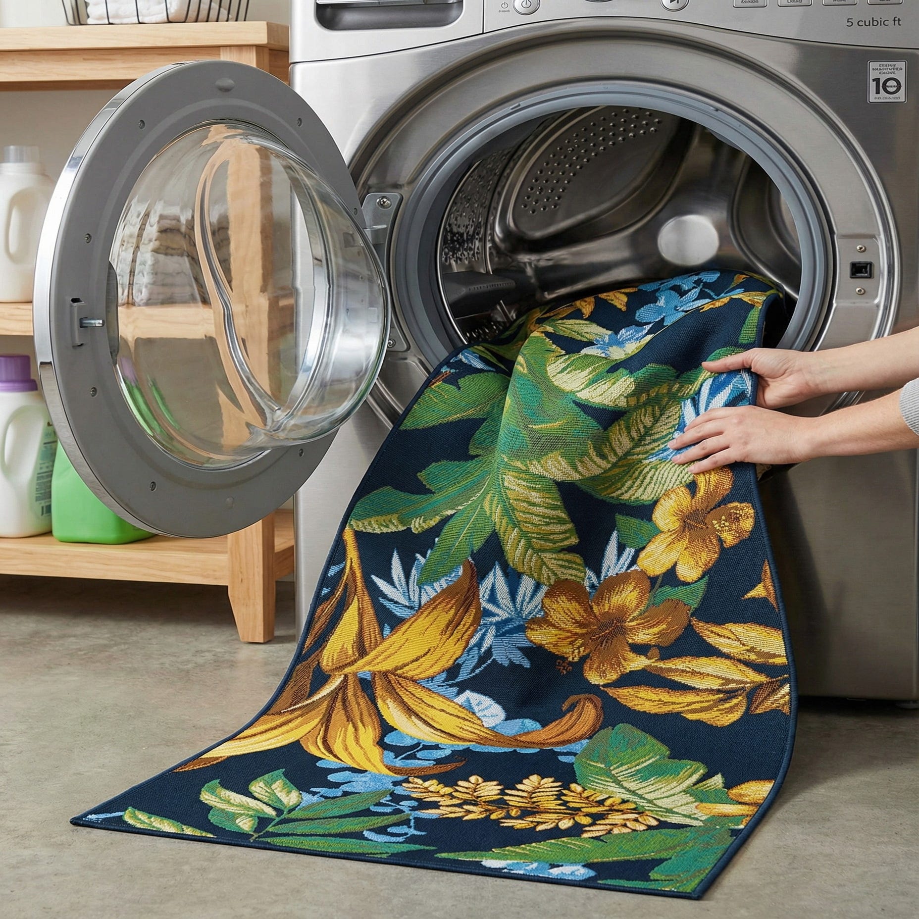 2' 7 x 5' 3 Washable Botanical Indoor / Outdoor Runner Rug