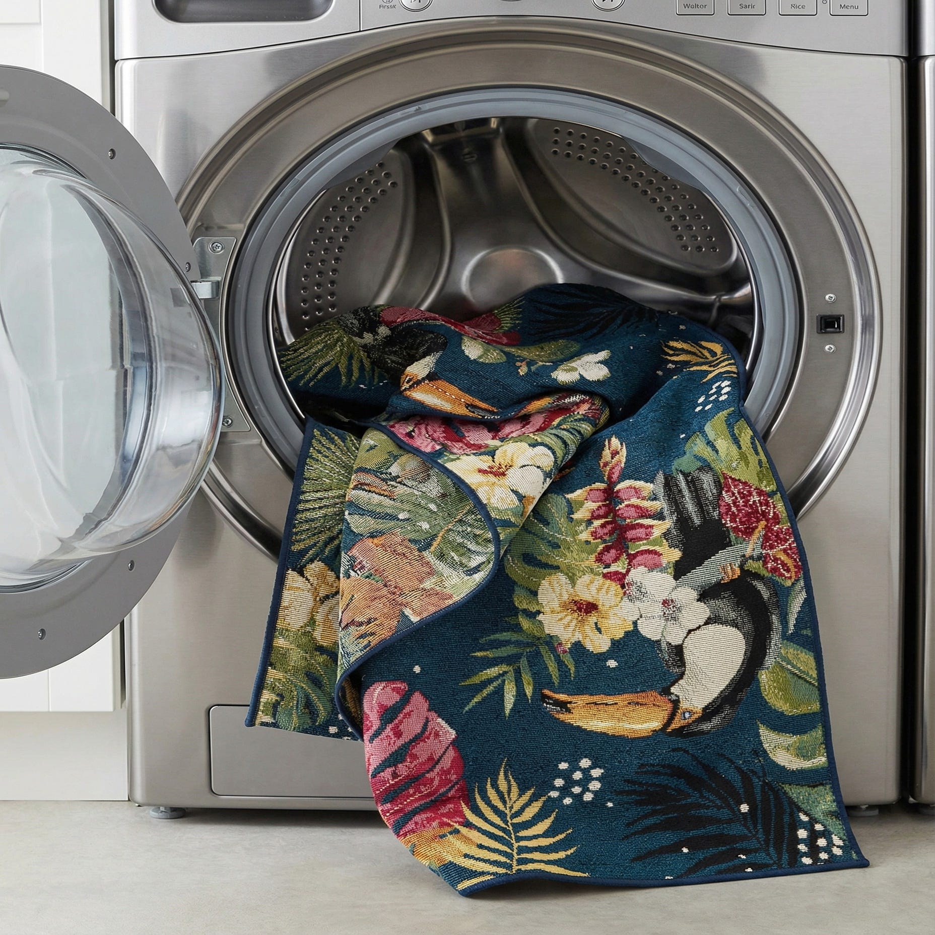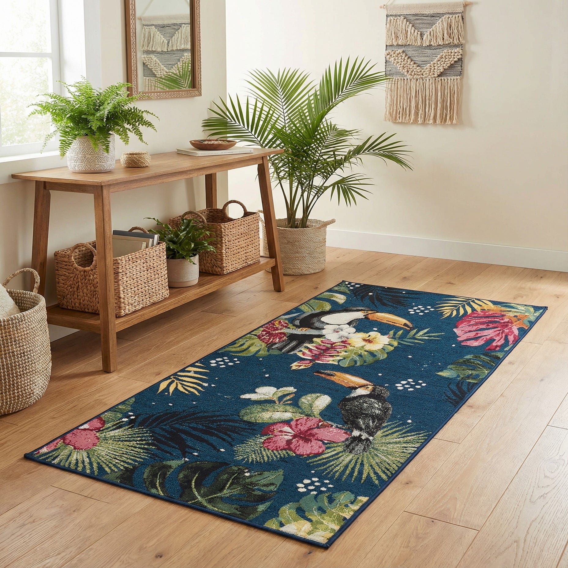 2' 7 x 5' 3 Washable Botanical Indoor / Outdoor Runner Rug