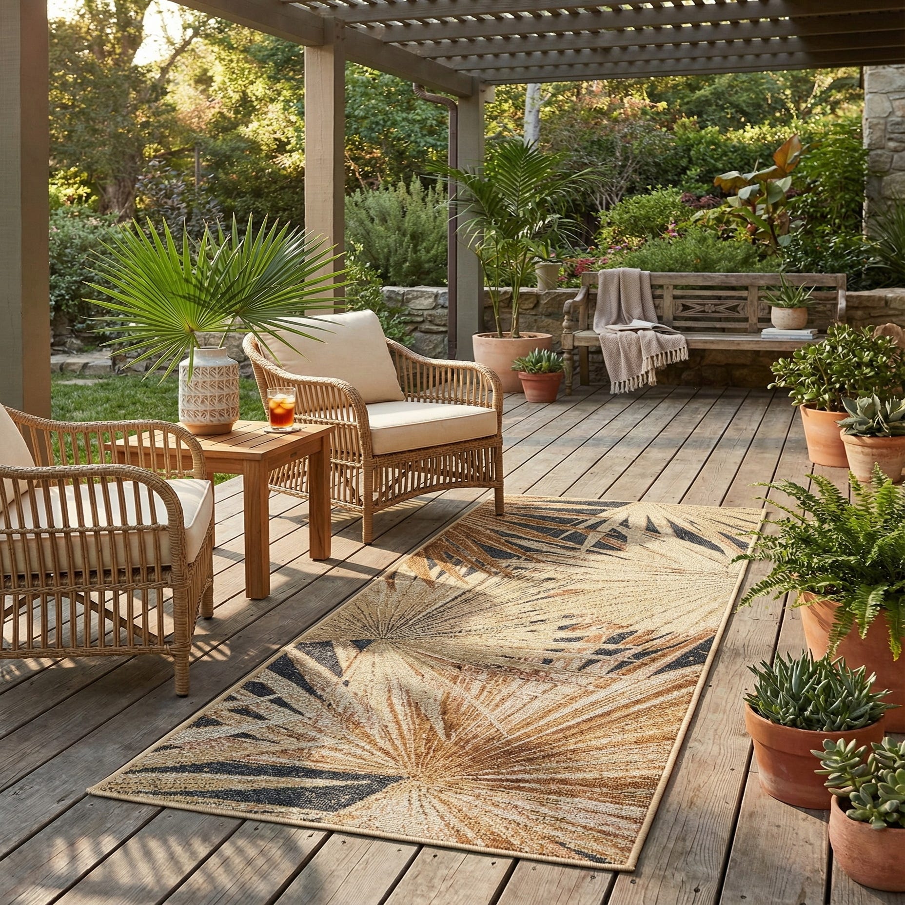 2' x 5' Washable Botanical Indoor / Outdoor Runner Rug