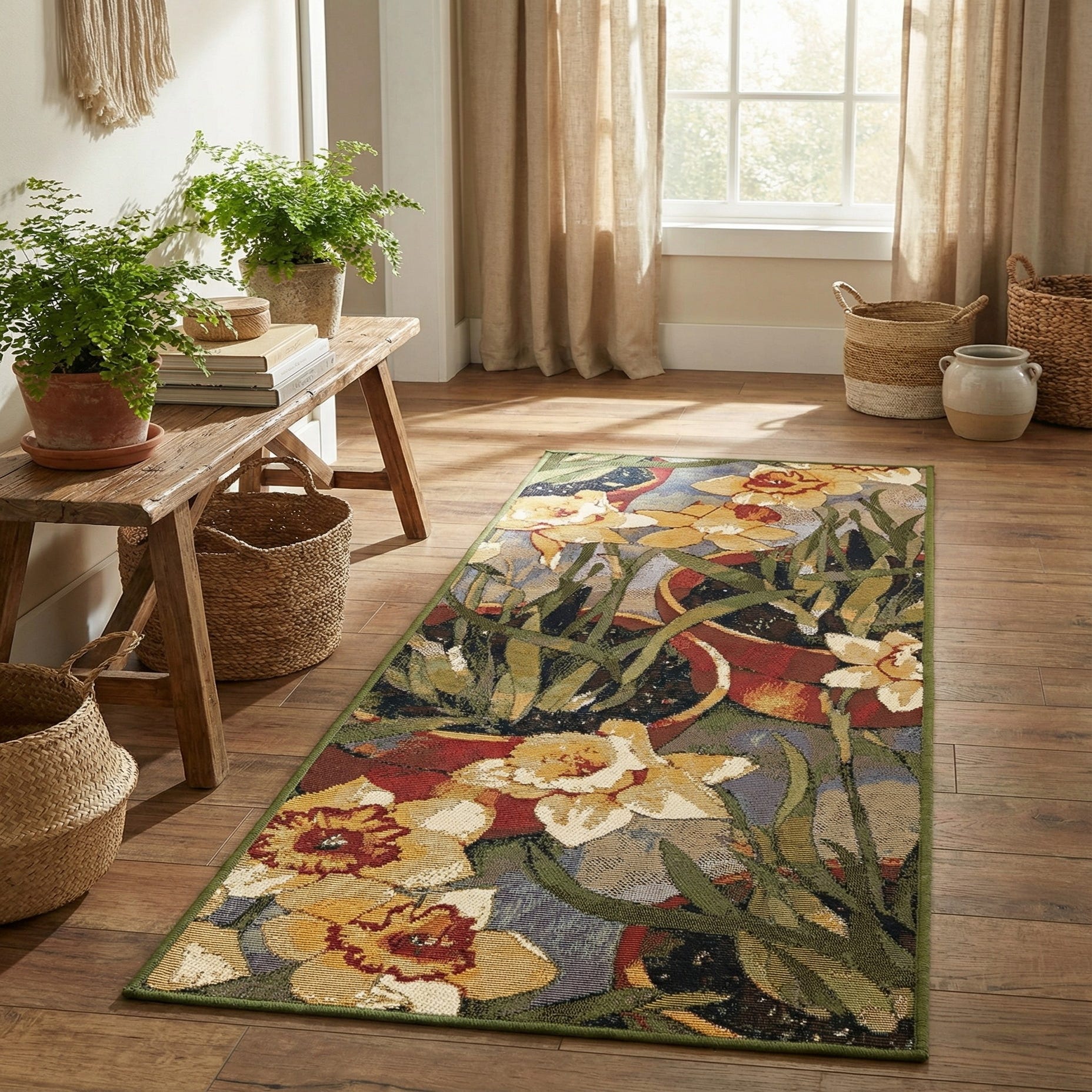 2' x 5' Washable Botanical Indoor / Outdoor Runner Rug