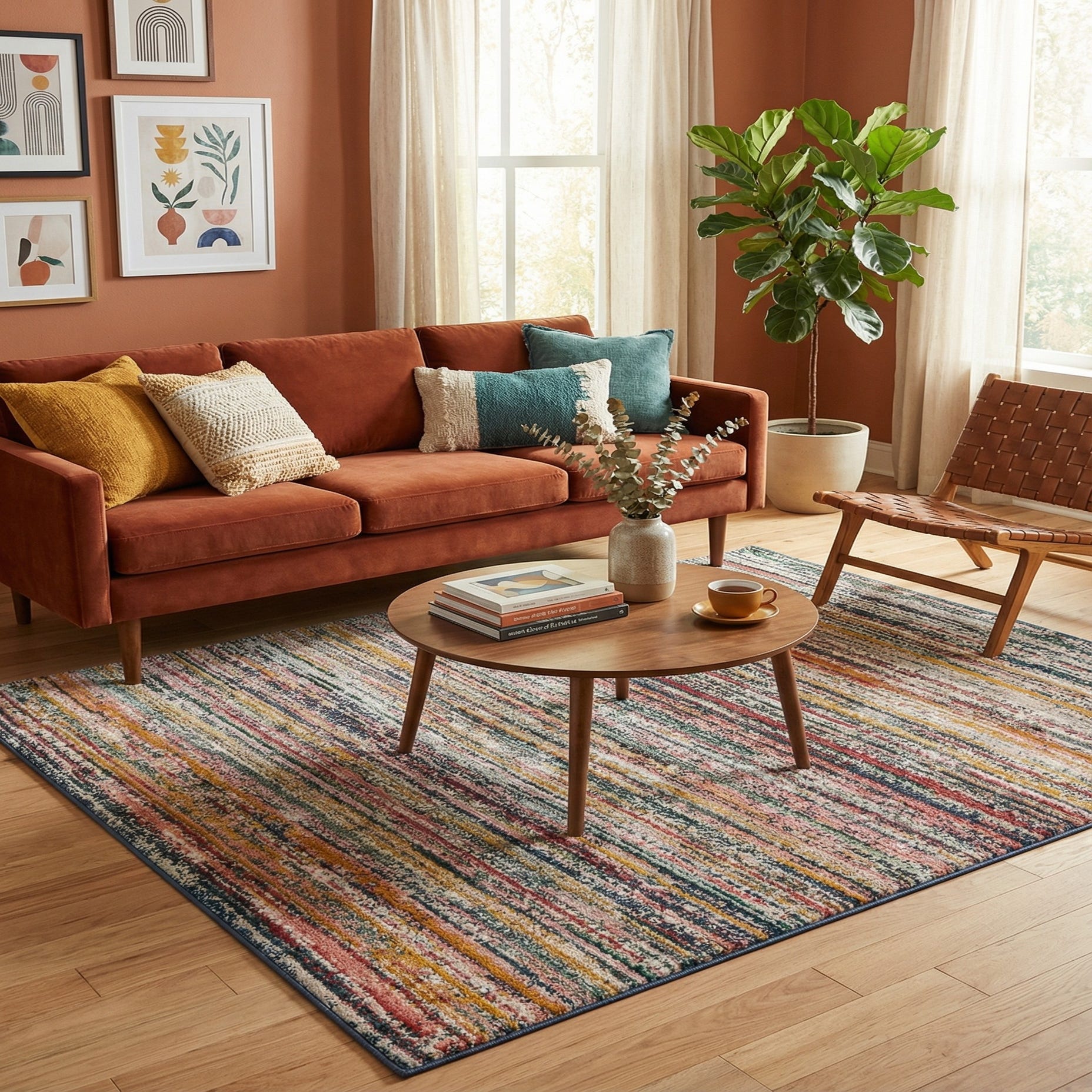 Primary color is Multi. Colors in this rug include: Multi, Beige, Blue, Brown, Red, Rust Red, Olive, Orange, Peach, Navy Blue, Violet, Light Blue, Light Brown, Light Green, Light Salmon.
