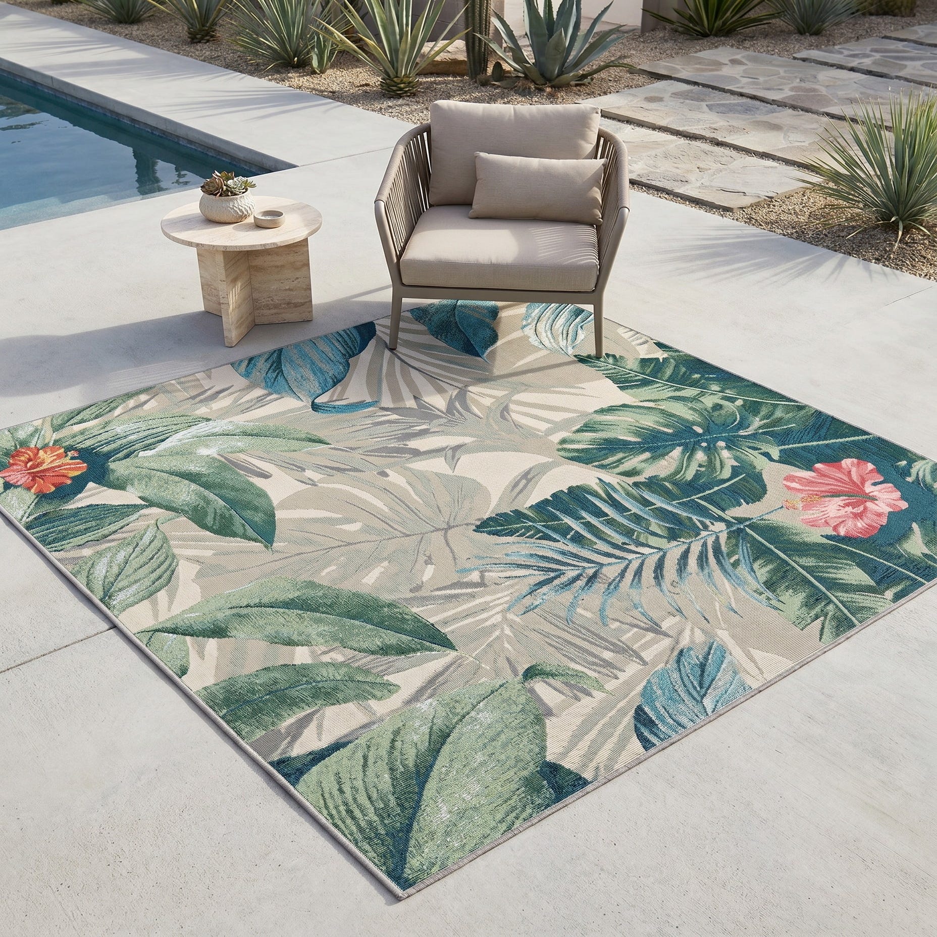 5' 3 x 5' 3 Easy-Clean Botanical Indoor / Outdoor Square Rug