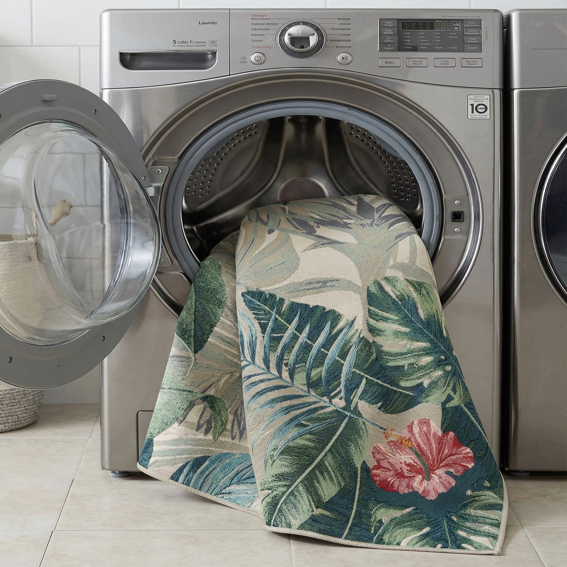 Detail image of 5' 3 x 5' 3  Washable Botanical Indoor / Outdoor Square Rug