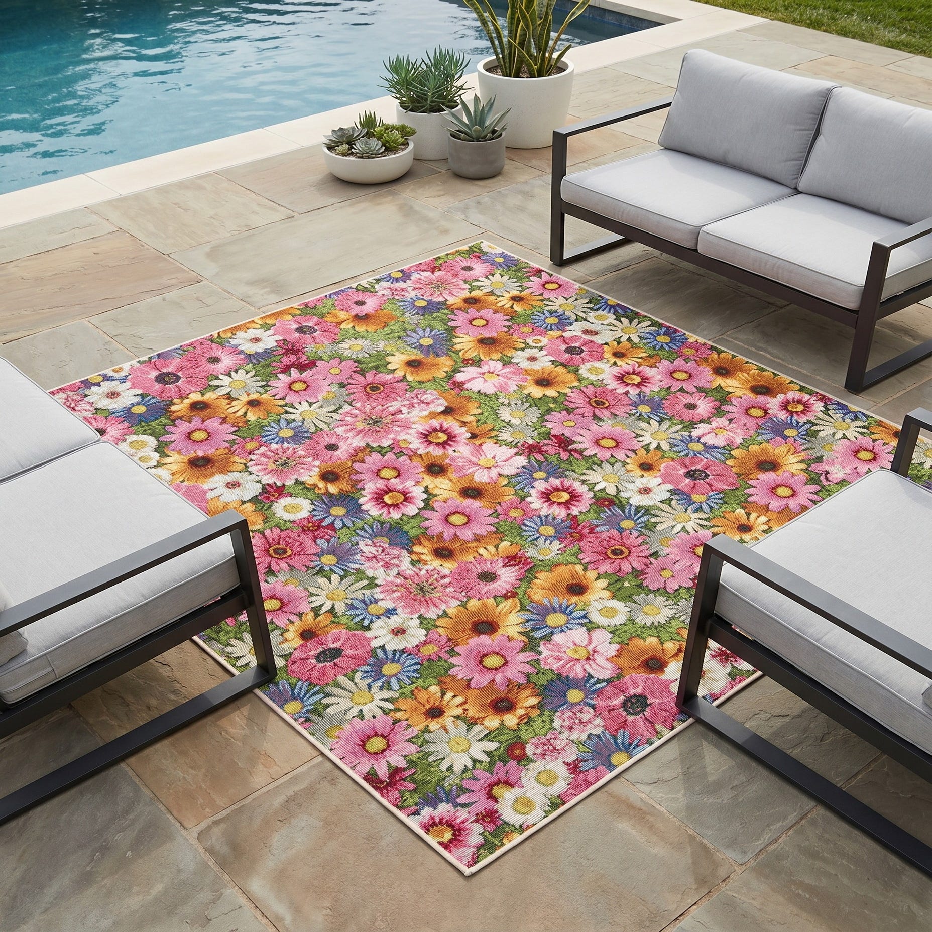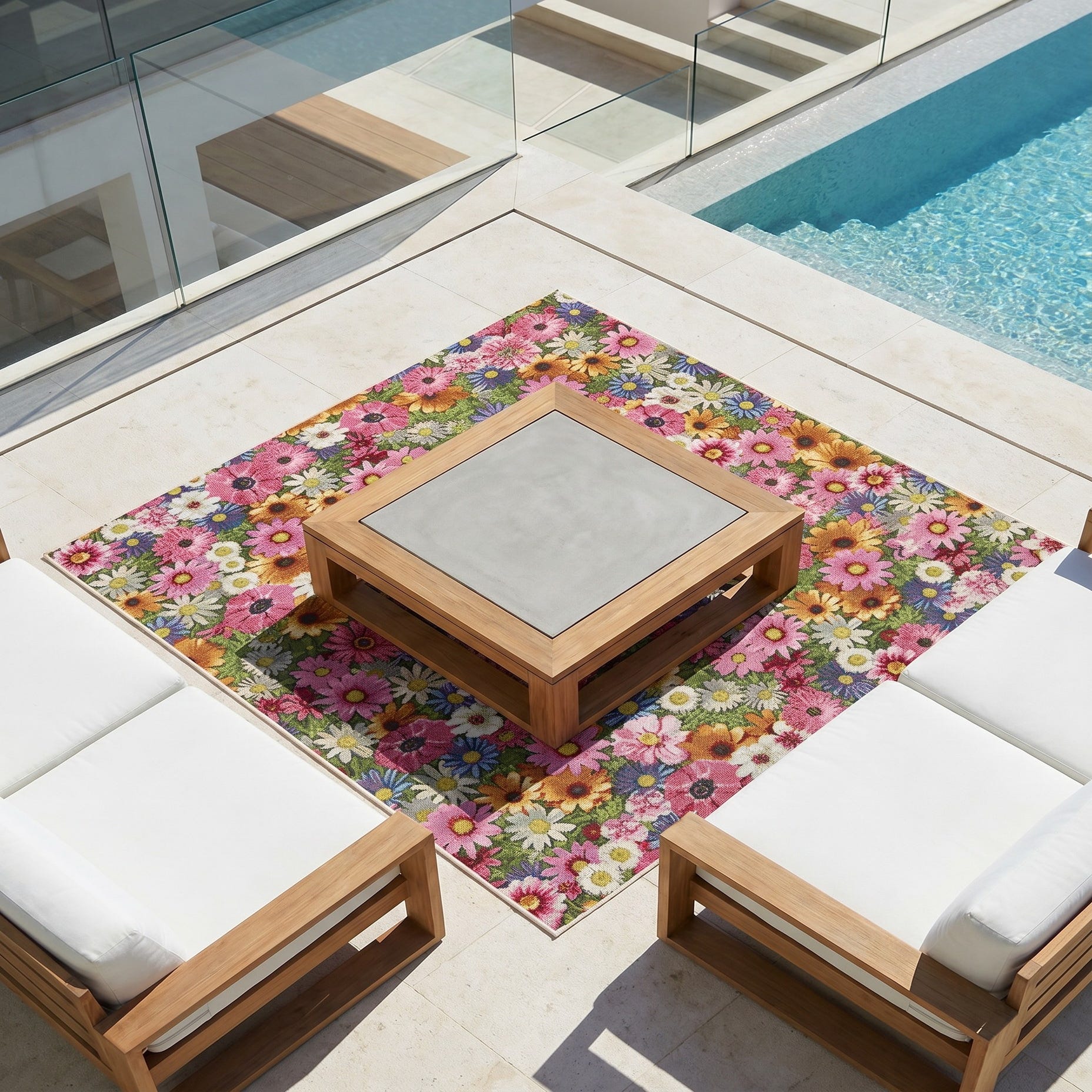 5' 3 x 5' 3 Easy-Clean Botanical Indoor / Outdoor Square Rug