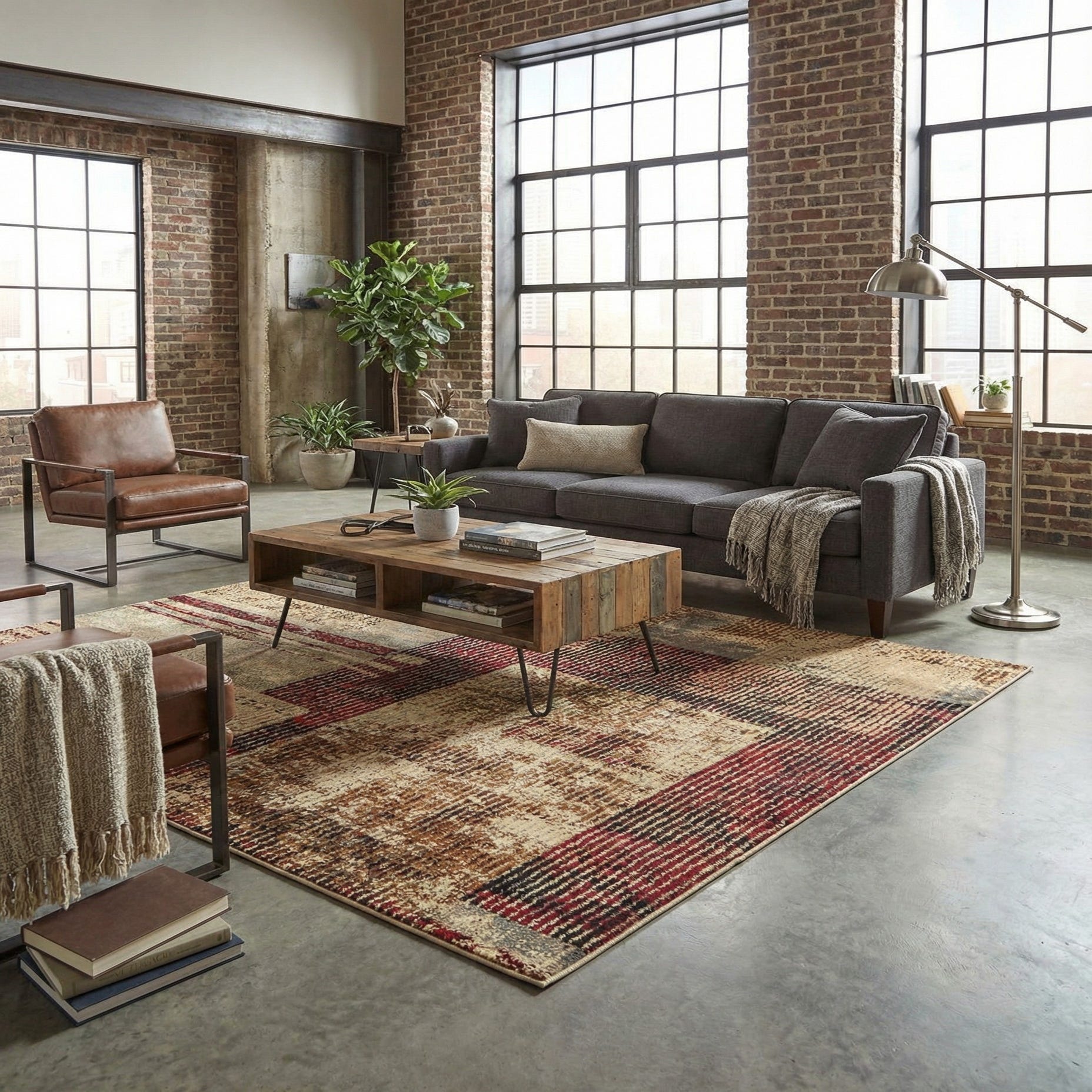 Primary color is Multi. Colors in this rug include: Multi, Beige, Black, Brown, Burgundy, Gray, Maroon.
