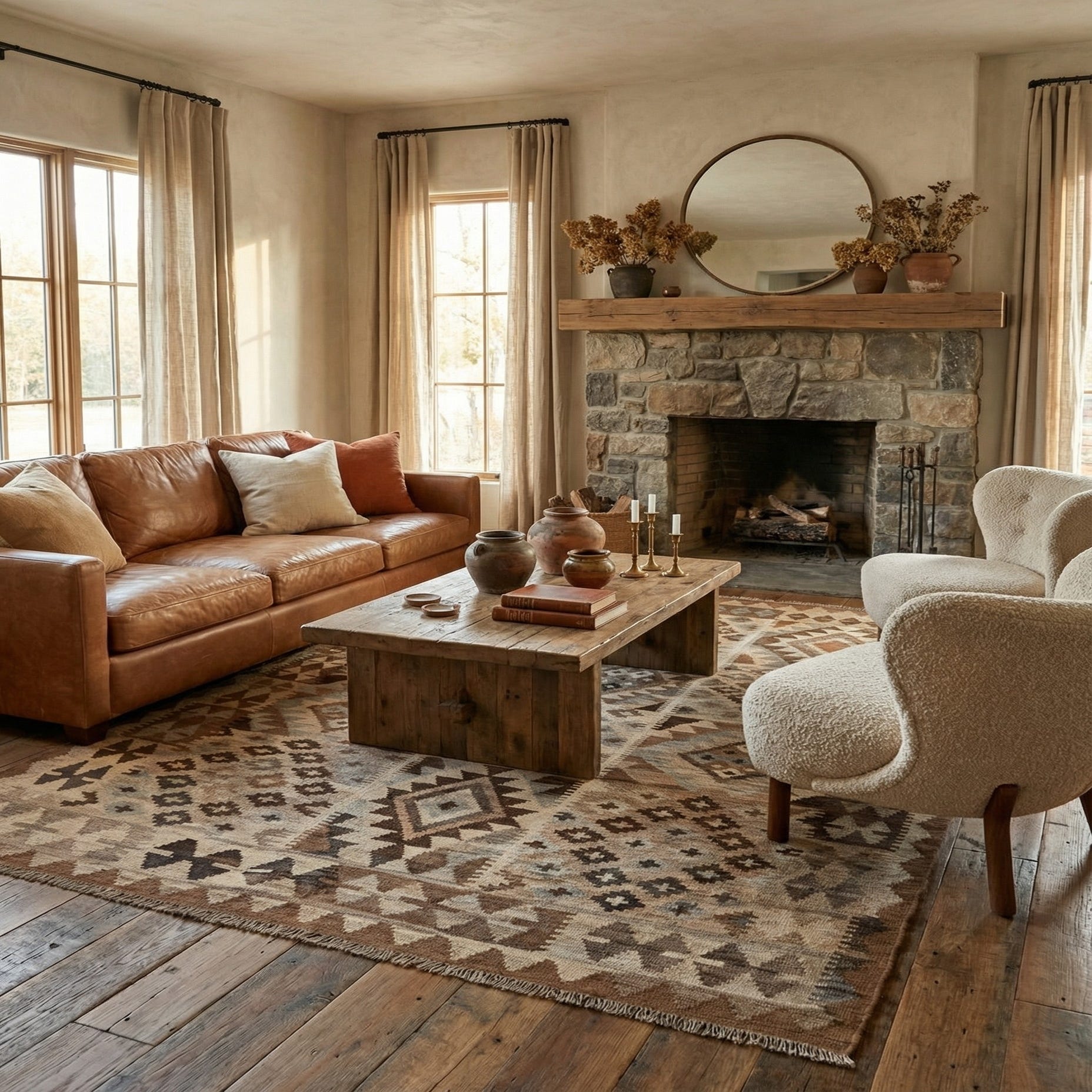 5' x 6' 6 Hand Woven Kilim Maymana Wool Rug