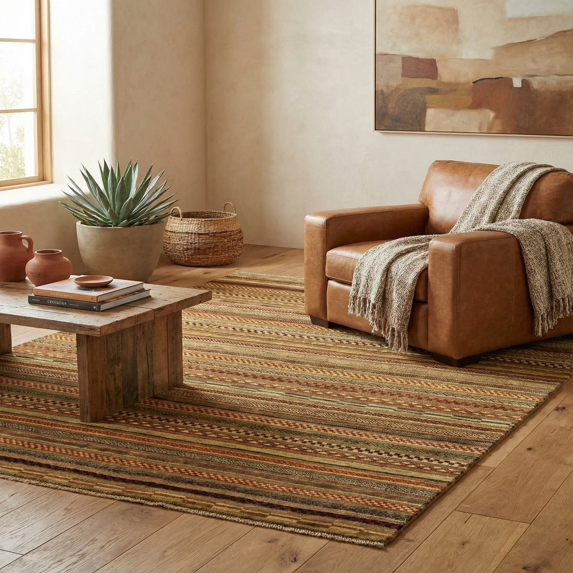 Primary color is Multi. Colors in this rug include: Multi, Beige, Black, Blue, Cream, Green, Orange, Peach, Red, Gold.