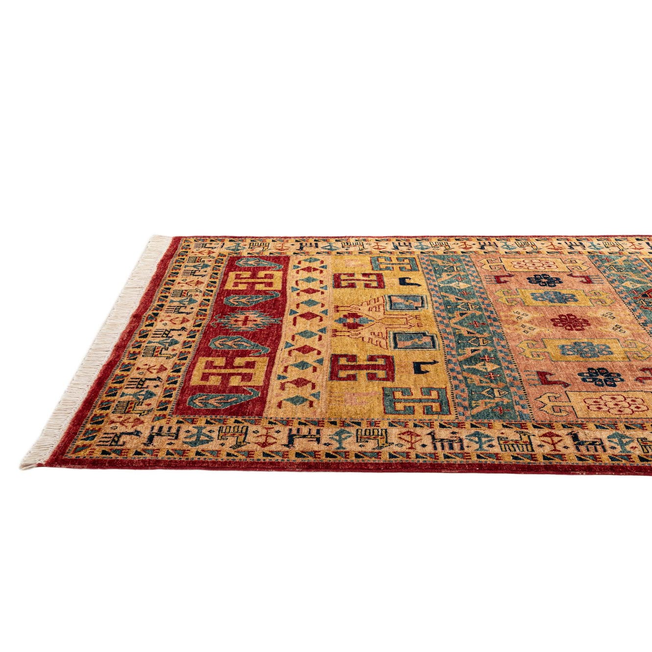 Primary color is Multi. Colors in this rug include: Multi, Beige, Blue, Brown, Green, Red, Yellow, Navy Blue.