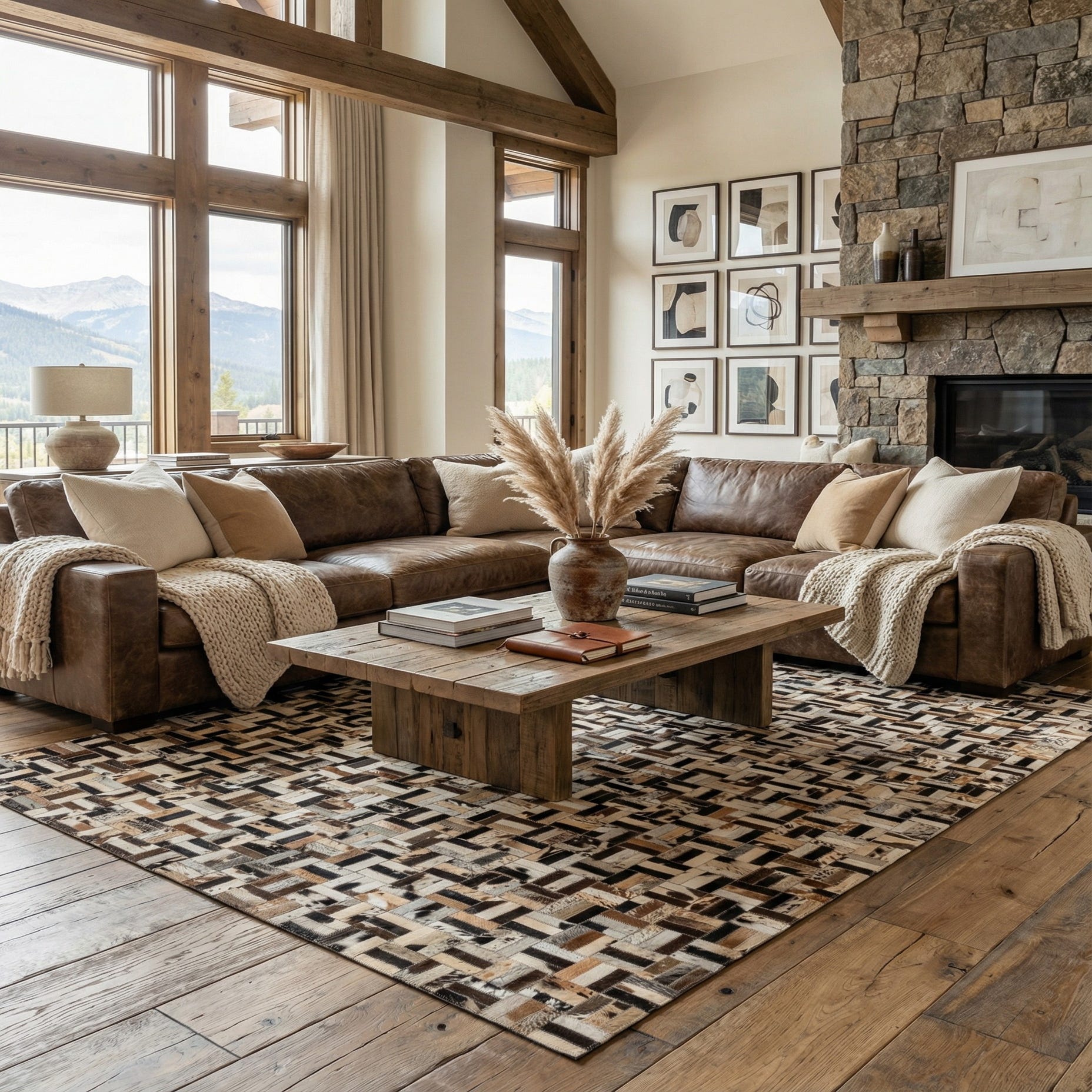 Detail image of 5' 1 x 8' Cowhide - Patchwork Rug