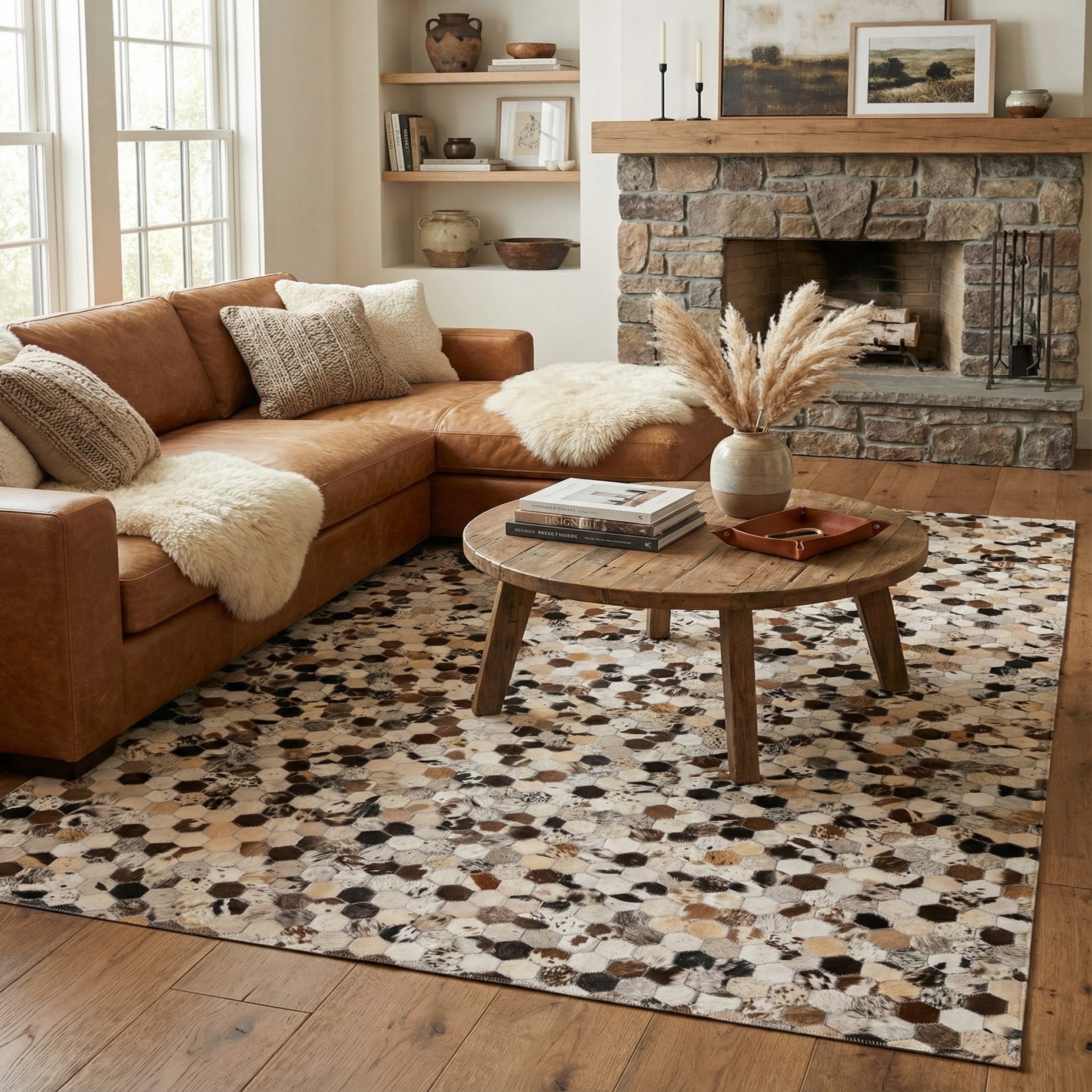 Detail image of 5' 1 x 8' Cowhide Leather Rug
