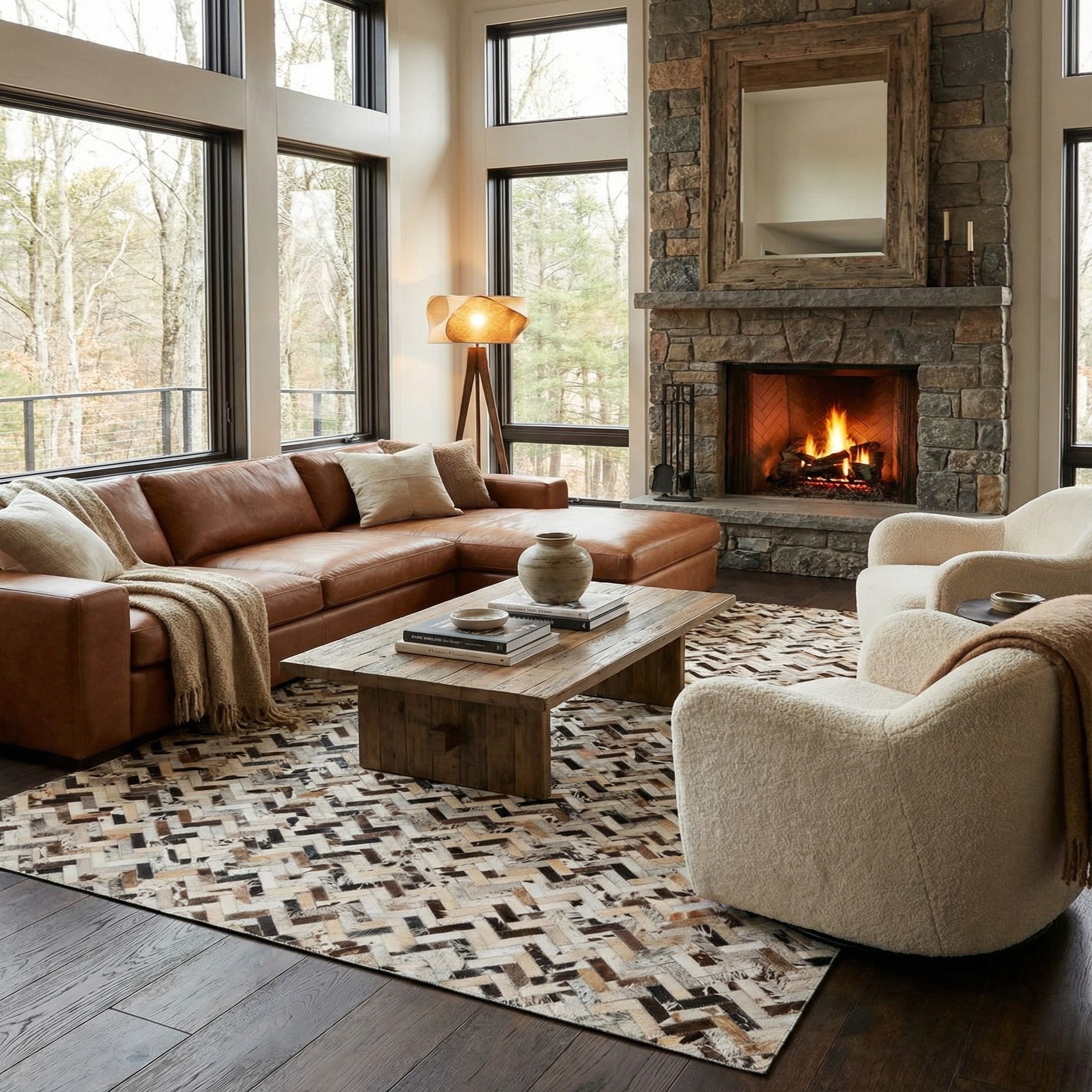 Detail image of 5' 2 x 8' Cowhide Leather Rug