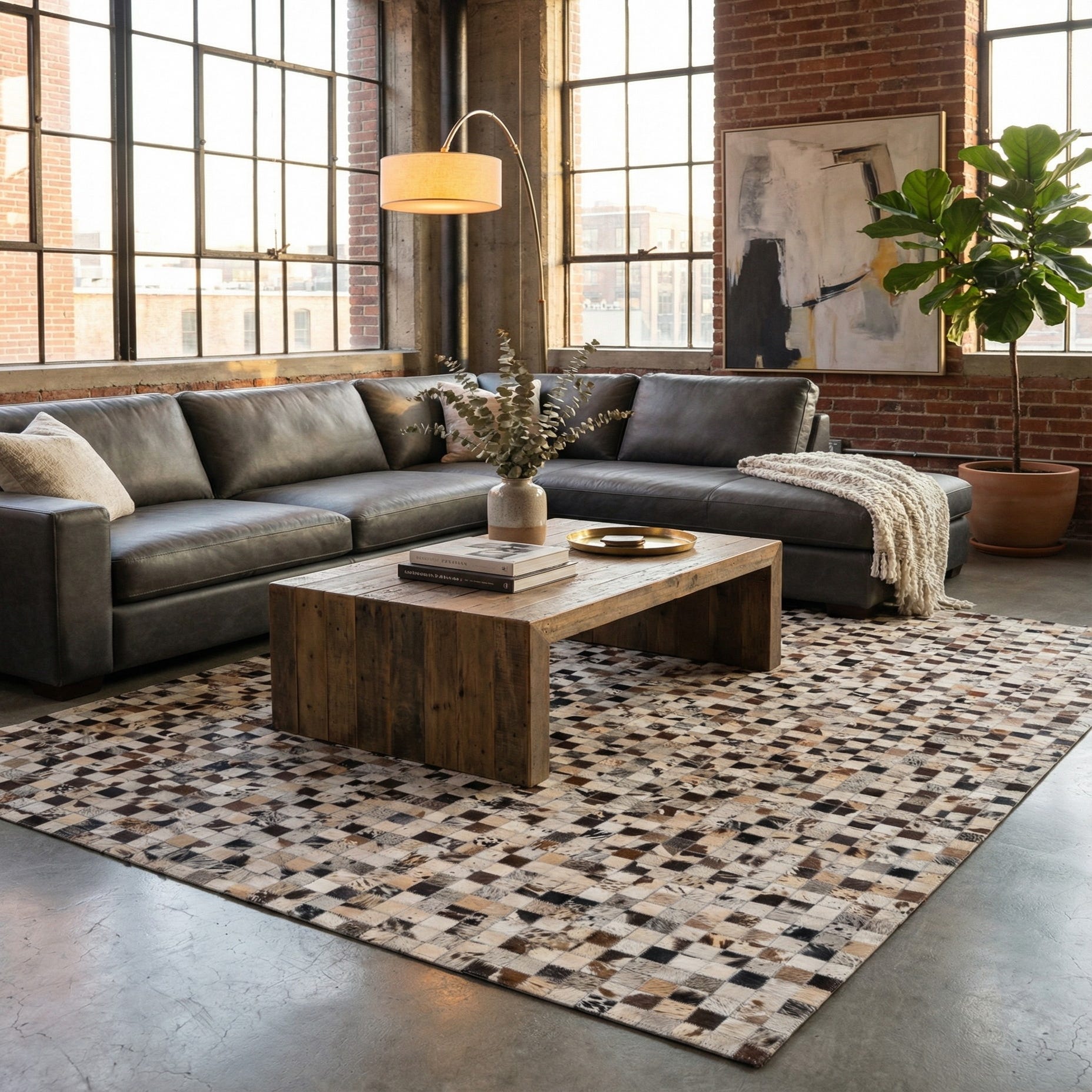 Detail image of 5' 2 x 8' Cowhide Leather Rug