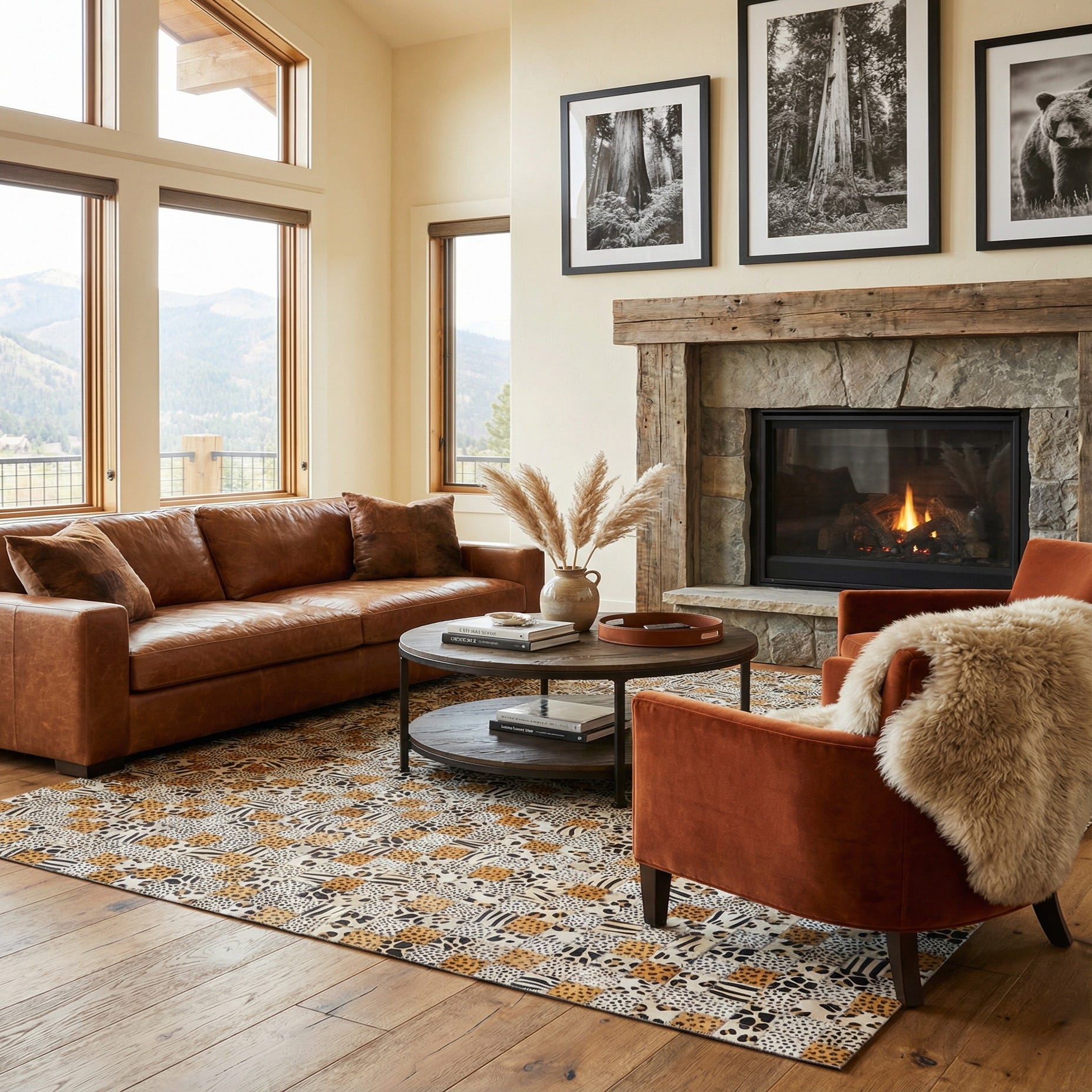 5' 1 x 8' Cowhide Leather Rug