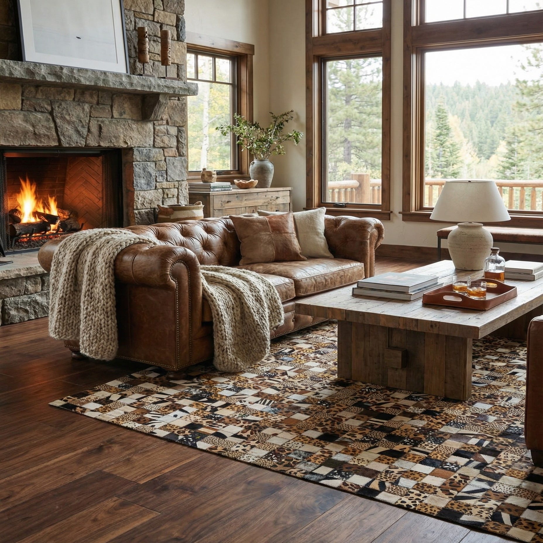 5' 1 x 8' 1 Cowhide Leather Rug