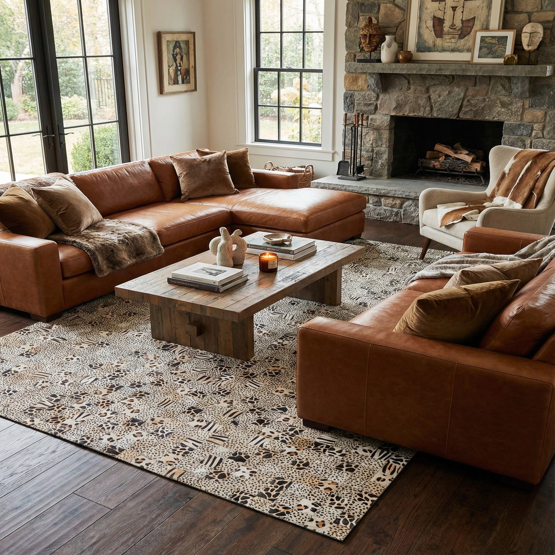 Detail image of 5' 1 x 8' Cowhide Leather Rug
