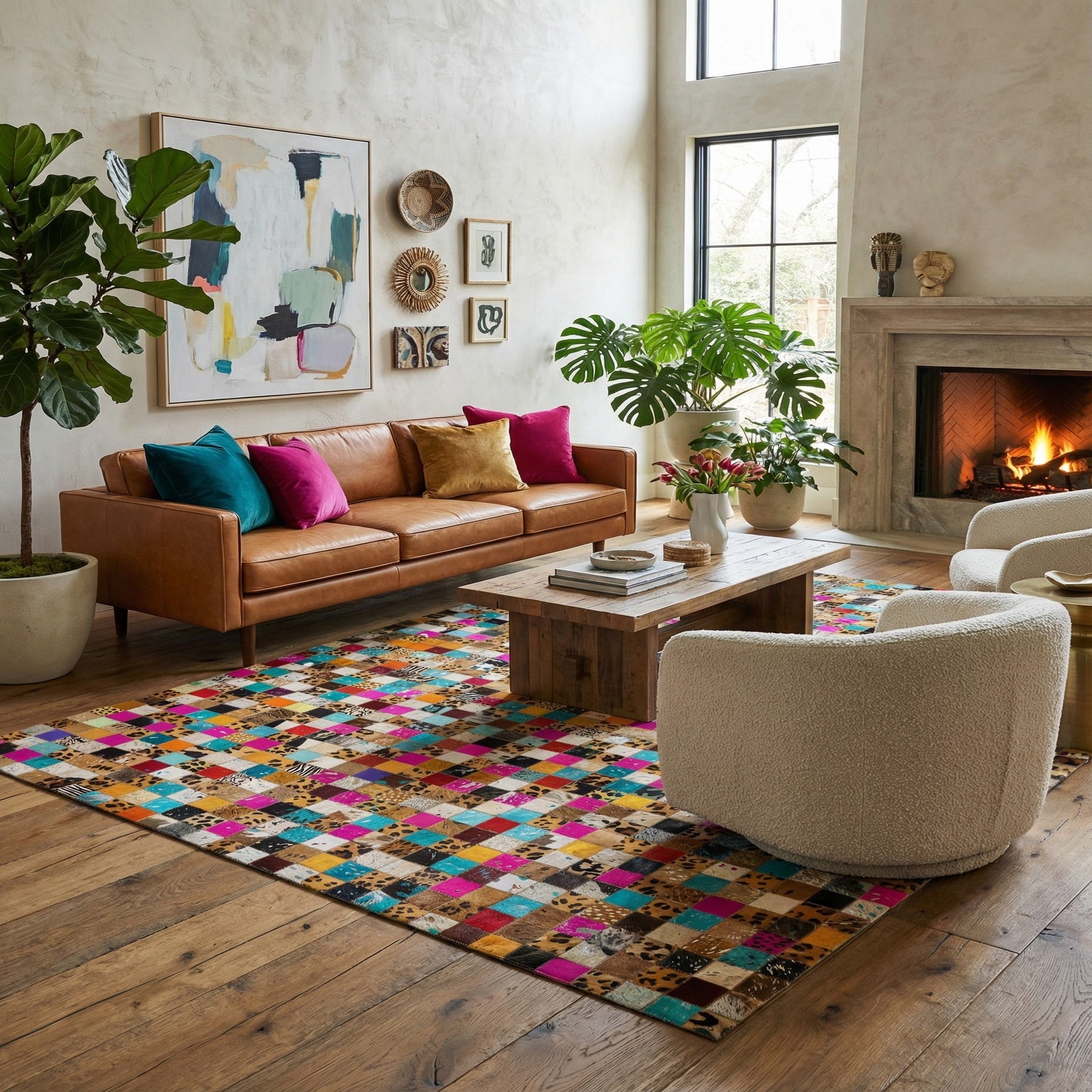 Detail image of 5' 1 x 7' 10 Cowhide Leather Rug