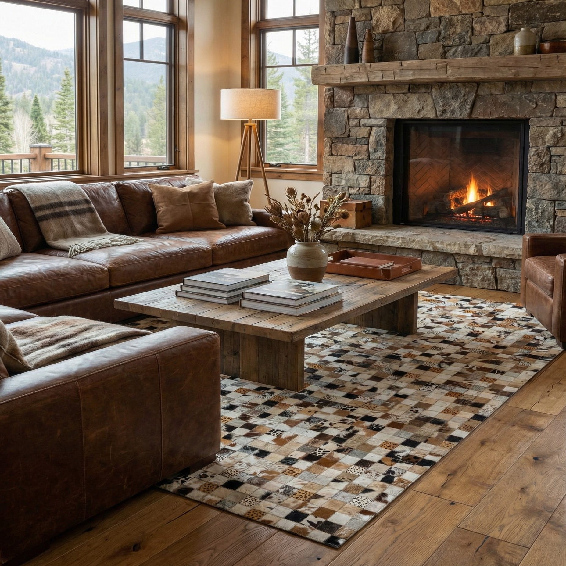 Detail image of 5' x 7' 10 Cowhide Leather Rug