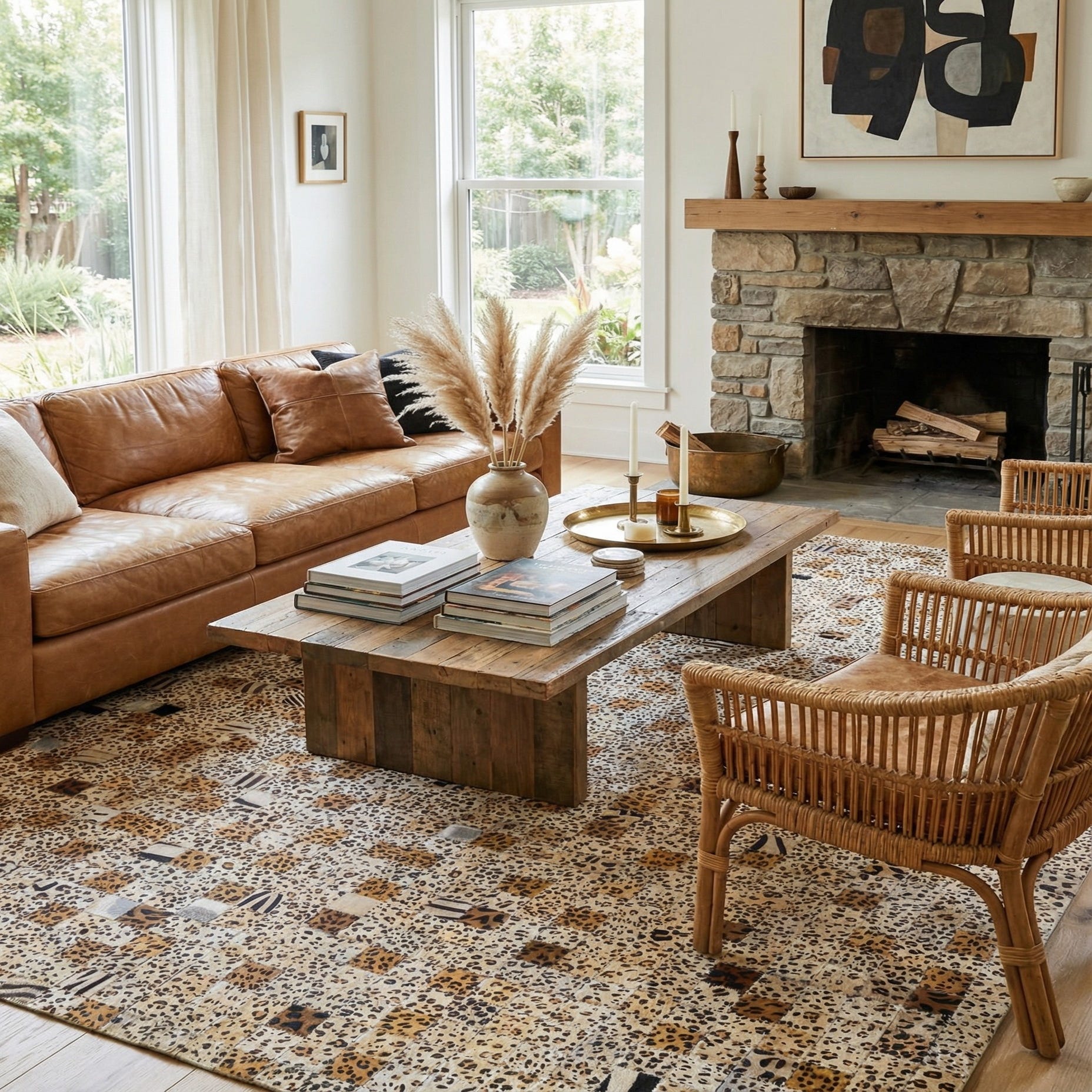 Detail image of 5' 1 x 8' Cowhide Leather Rug