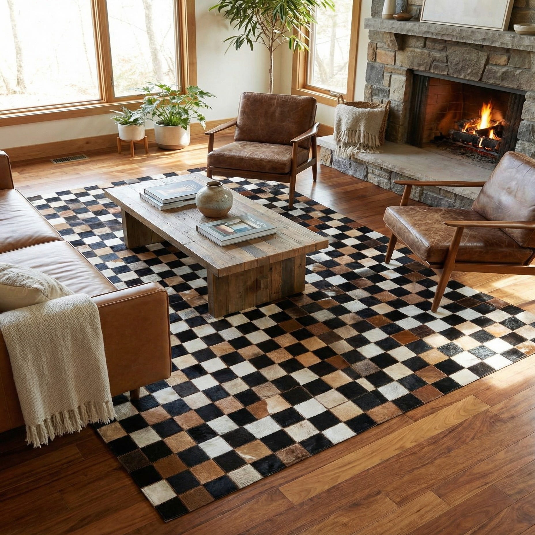 5' 1 x 7' 10 Cowhide Leather Rug