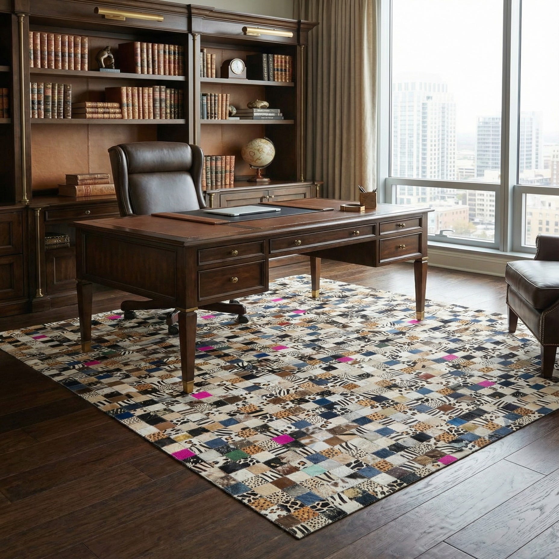 Primary color is Multi. Colors in this rug include: Multi, Beige, Black, Blue, Brown, Navy Blue, Yellow, Pink, Silver, Red.
